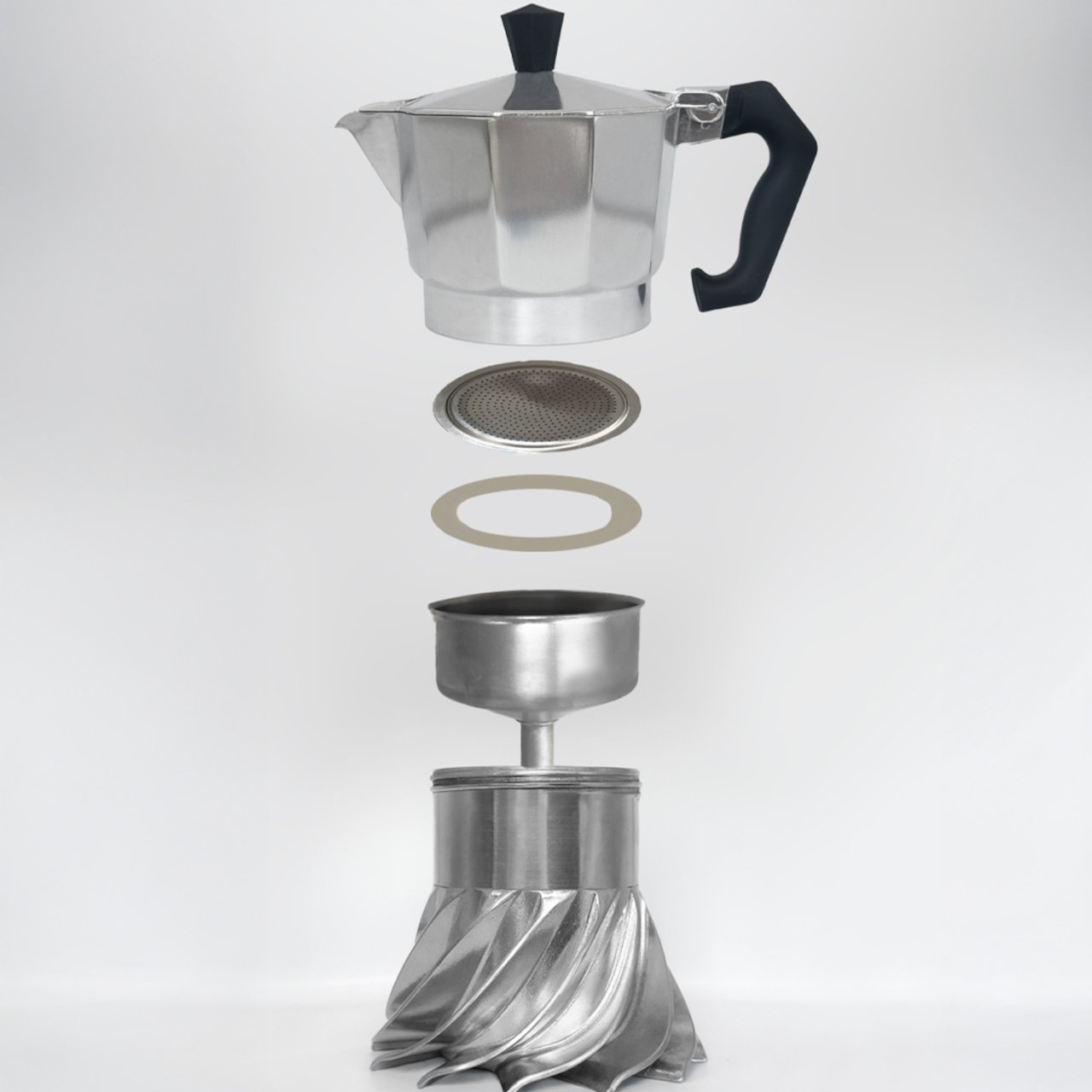Turbo Moka 用一道螺旋,优化了百年摩卡壶的效率与美感。手工铸造、节能提速,把每日咖啡变成安静而精致的时刻。