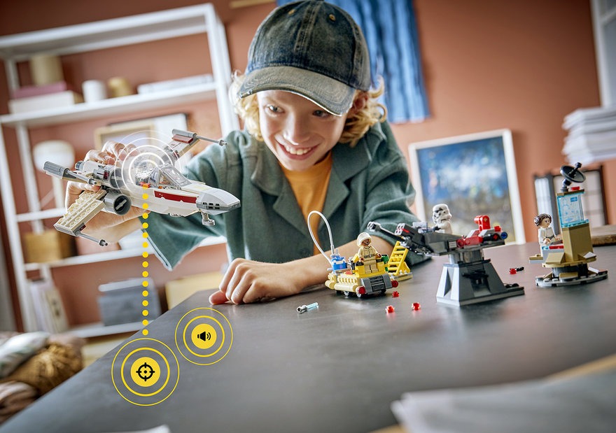 作为实体拼搭玩具的代表,乐高正首次系统性地引入“智能积木”概念。不同于传统的ABS一体成型积木,新一代积木内置芯片、加速度计、声光传感器、LED与微型扬声器,并通过专用无线充电板供能。这些积木将率先应用于全新的星球大战系列中,成为乐高智能玩乐系统的核心组件。该系统还包括智能标签与智能人仔,二者内含被动芯片与唯一数字ID,无需供电即可被智能积木识别。通过这种识别机制,积木之间能够触发声音、灯光与动态反馈,例如角色落座自动播放配乐,或载具靠近时模拟战斗效果。乐高并未改变拼搭本身,而是在保持操作与空间想象的前提下,为传统积木引入可感知、可响应的行为感受。