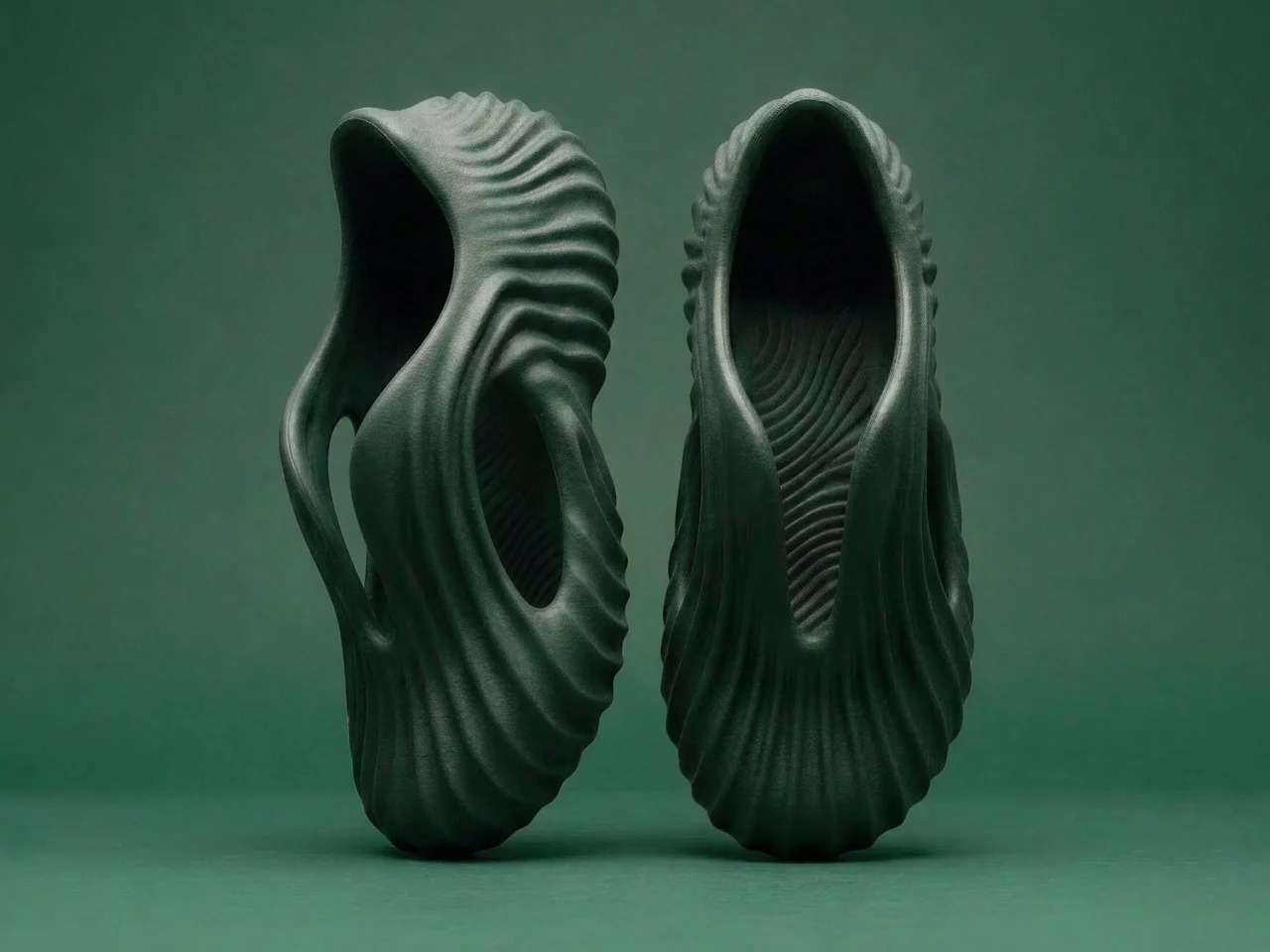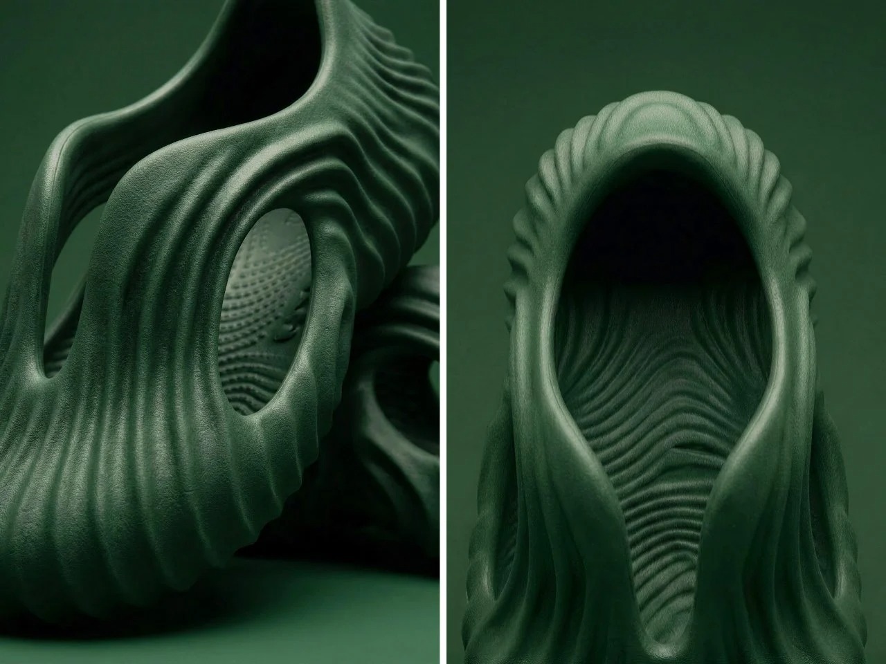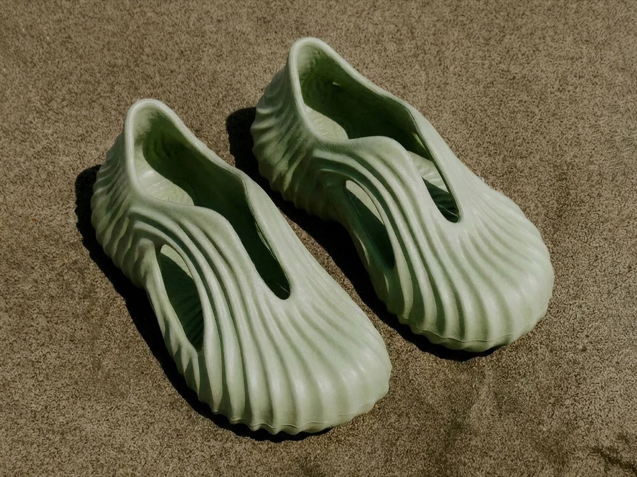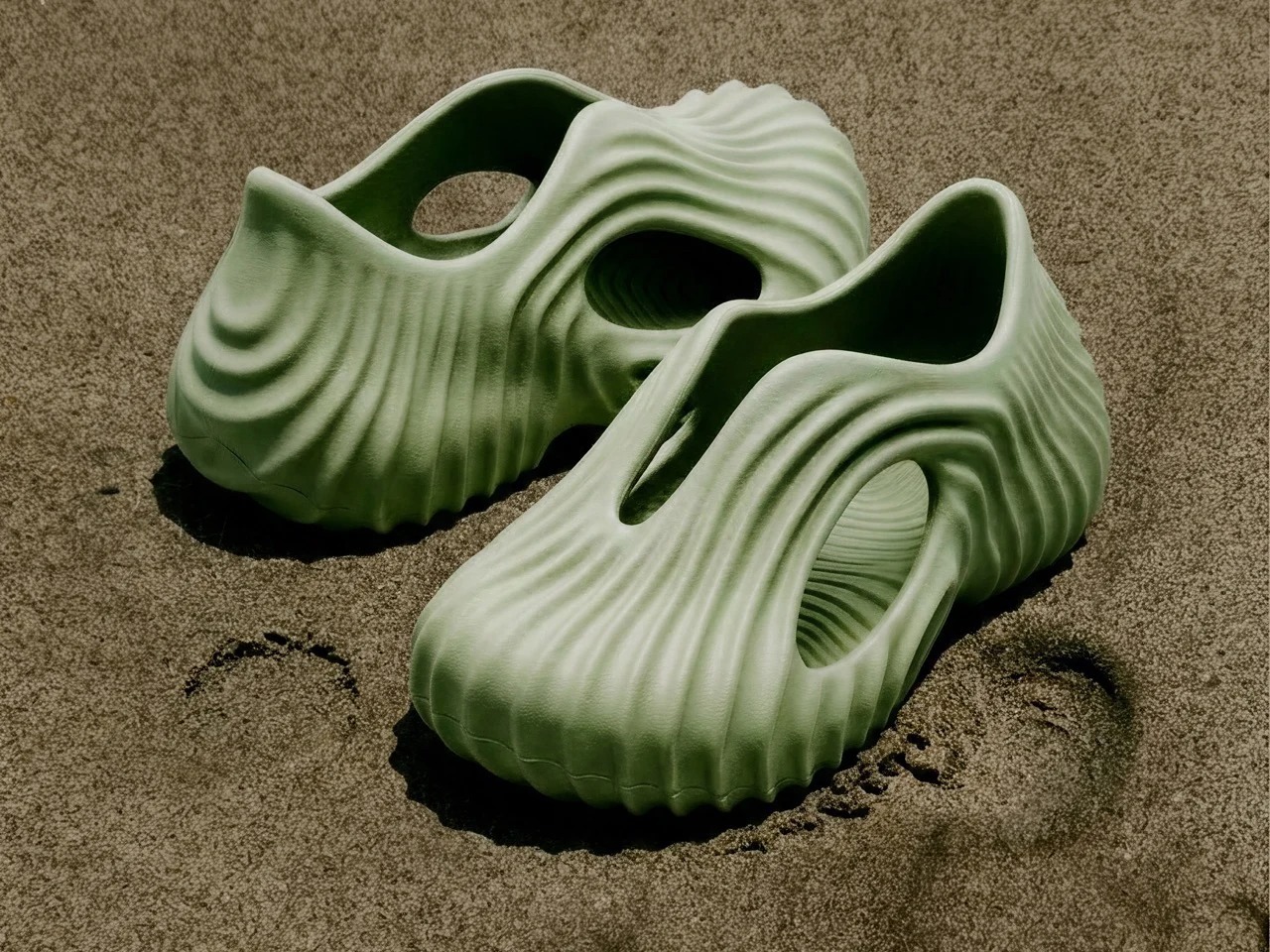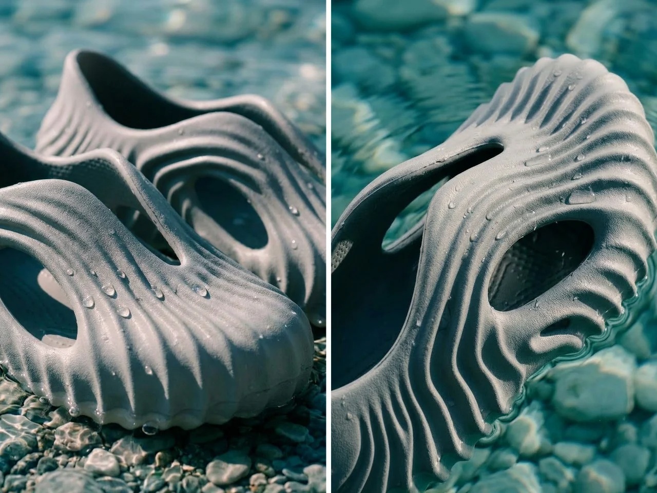 Onda是设计师Tati Ferrucio创作的一款概念木屐,灵感源自海浪、沙纹等自然地质形态。鞋身采用一体成型设计,表面呈现如砂岩般的密集纹理,镂空结构兼具排水与减重功能。提供灰蓝、沙米、鼠尾草绿三种配色,分别呼应湿润岩石、沉积岩峭壁与干燥沙地的质感。设计师借助AI辅助工具Vizcom进行迭代创作,将自然元素转化为可穿戴的有机形态,探索木屐在实用性与雕塑感之间的平衡。