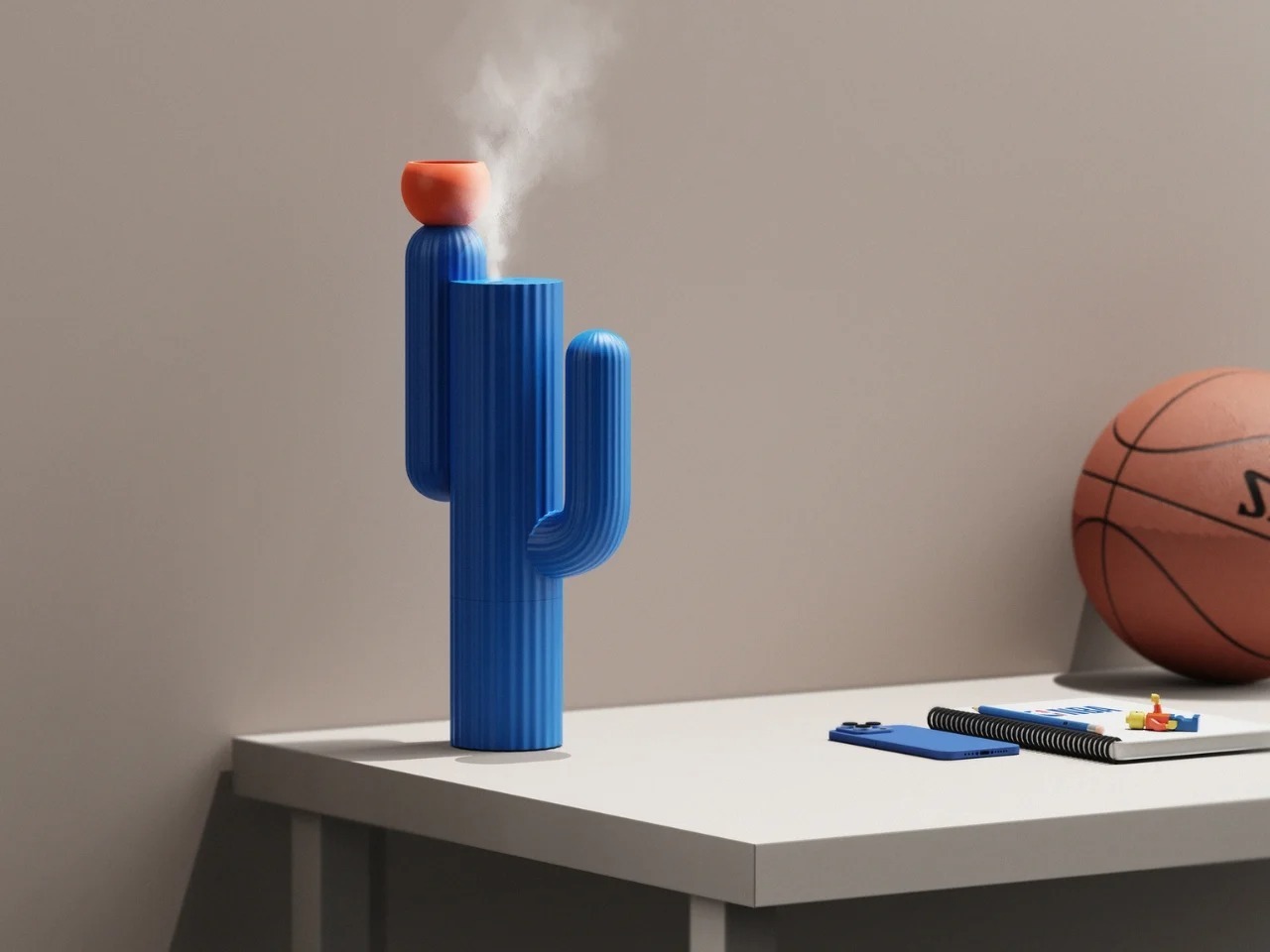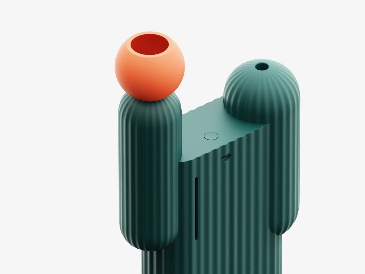 Cabu是一款仙人掌造型的加湿器,由设计师Ho Joong Lee创作。它拥有圆润的棱纹躯干,提供森林绿与钴蓝两种主色,顶部磁吸花朵(黄、橙、粉可选)实为注水口,加水动作如同浇灌植物。背面设有透明水位窗,采用USB-C充电。设计将加湿功能隐于拟人化的形态中,让日常使用充满仪式感,为干燥空间增添一丝安静的生命力。