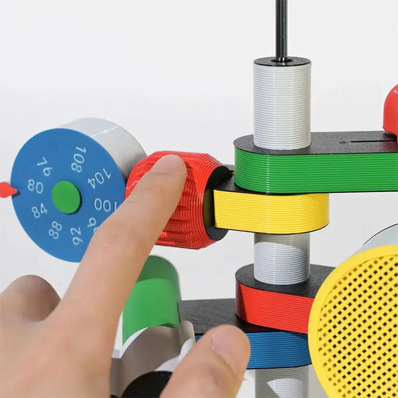 Anomalo FM收音机是一款集功能、玩味与造型于一体的个性化电子装置。它以色彩缤纷的“肢体”构成三维控制界面:每一根枝干都有独立功能,从电台切换、音量调节到电池供能,尽显创意巧思。天线张扬地竖立中央,如同昆虫的支柱骨架,使整机呈现出玩具般的拟生姿态。PLA材质虽轻巧,但足以支撑创客自由构想的大胆形式,展现数字制造时代下电子产品的无限可能。