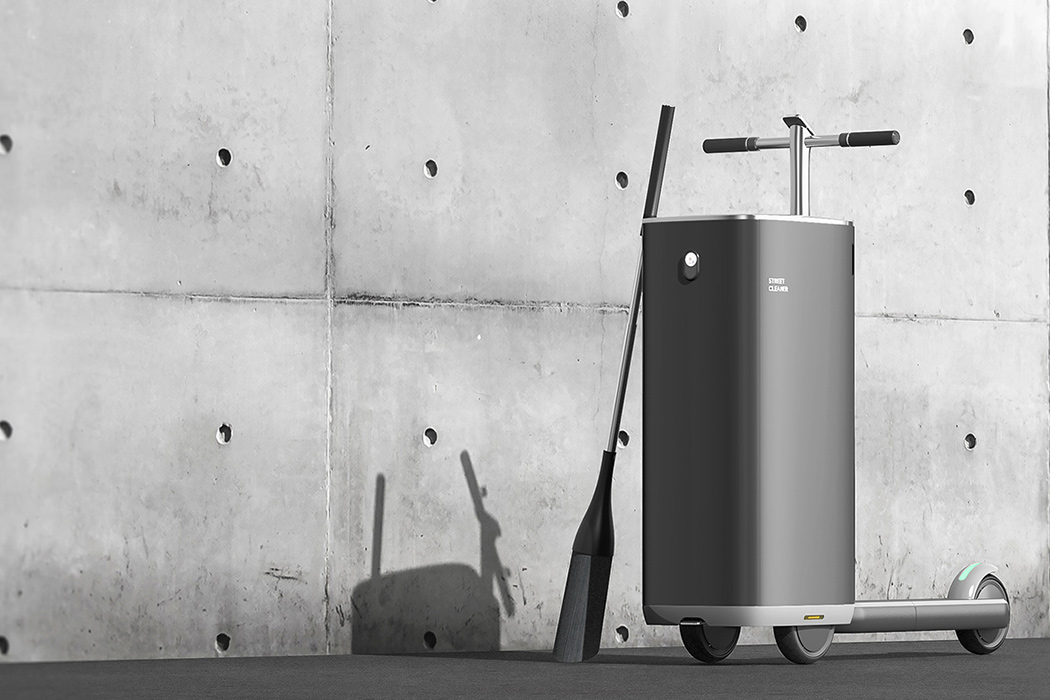 这是一款动滑板车+清洁手推车面向社区公共卫生的创新解决方案,旨在减轻清洁工人的劳动负担并提升工作效率。这款清洁滑板车通过电动代步功能,让清洁人员能更快覆盖区域,减少体力消耗。它由清洁箱、滑板和手机应用组成:清洁箱设有隔间,可容纳工具与急需物资;滑板可折叠并与清洁箱结合,变成手推车;边缘灯带提升夜间可见度;配套应用还能提示垃圾桶位置,优化清洁路线。在疫情仍为重点的今天,这一设计不仅帮助工人,也惠及社区居民,为城市营造更安全、整洁的环境。