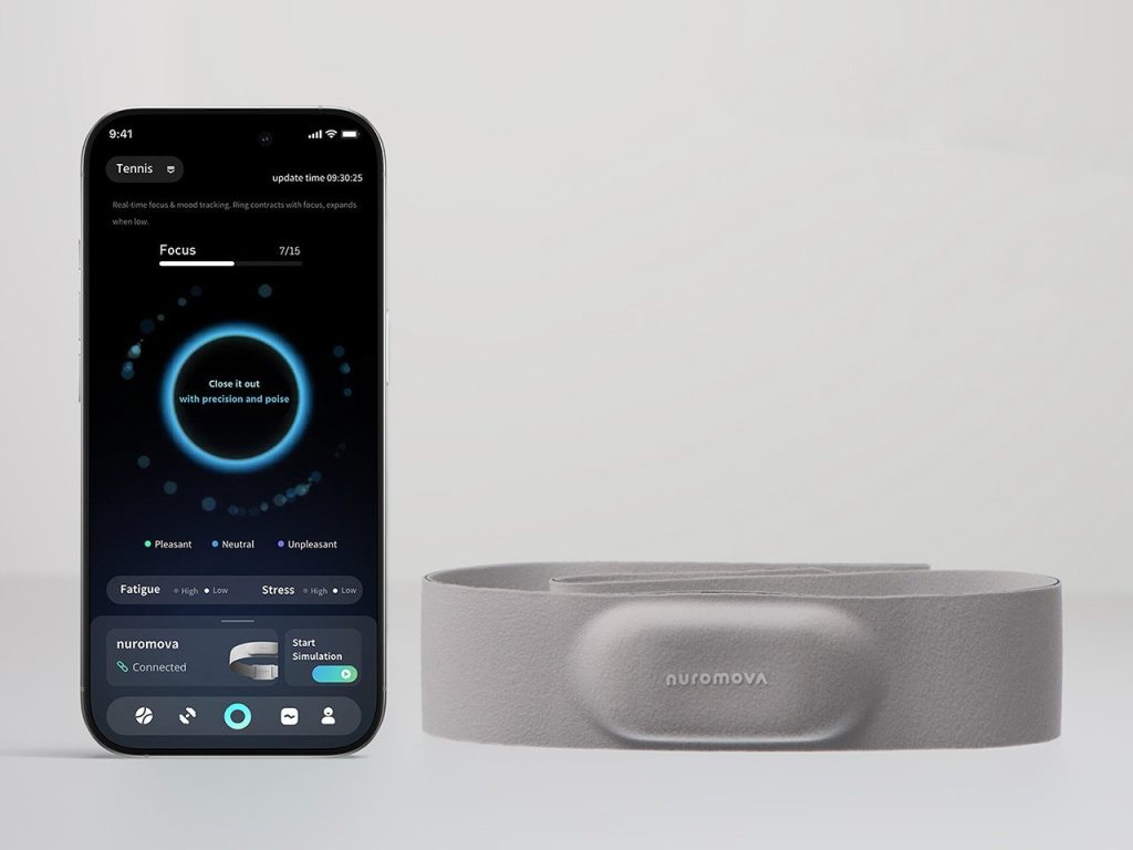 Nuromova N1是全球首款AI运动头带,由Nuromova科技团队设计,以"让心理状态可见可训"为核心理念。采用多层透气结构与模块化快拆设计,内置专业脑电图传感器,实时监测注意力、压力与情绪波动,通过振动提示与AI分析帮助运动员优化训练强度与心理韧性。