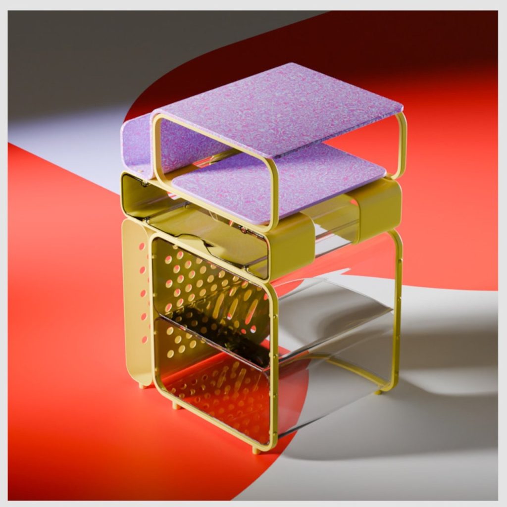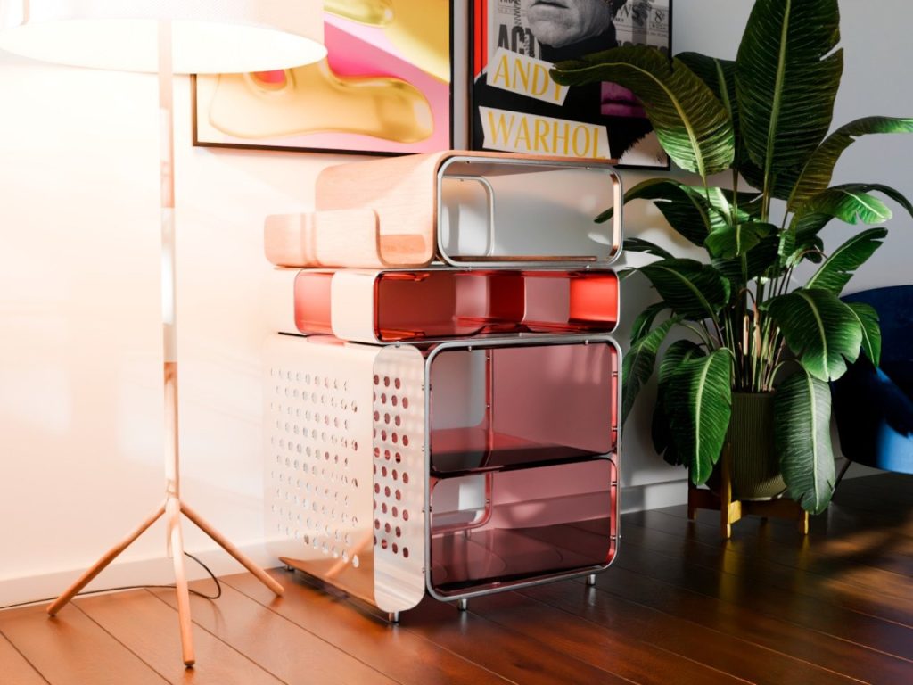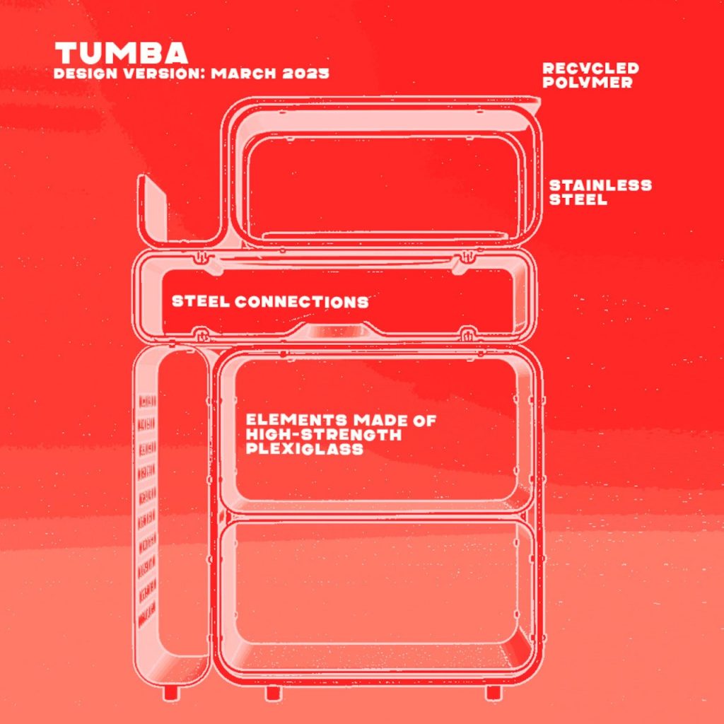 TUMBA概念货架系统瞄准传统模块化家具痛点——功能至上却乏味,可持续款更牺牲美感。它以再生聚合物为主体面板,旋出材料旧痕;有机玻璃构透明件,轻盈通透;不锈钢连接件免工具锁固,践行零浪费。设计跳脱刻板:鲜艳红/黄/紫模块点亮空间,透明与彩色交织,随光变幻层次。单元可垂直堆叠成塔、水平组柜,适配小公寓到大客厅。用户能选极简透明款,也能搭撞色组合,兼顾斯堪的纳维亚与极简风。从藏书到杂物,配置随需求生长。TUMBA证明:可持续设计无需妥协美学,再生材料能成视觉焦点,让环保与个性共存。