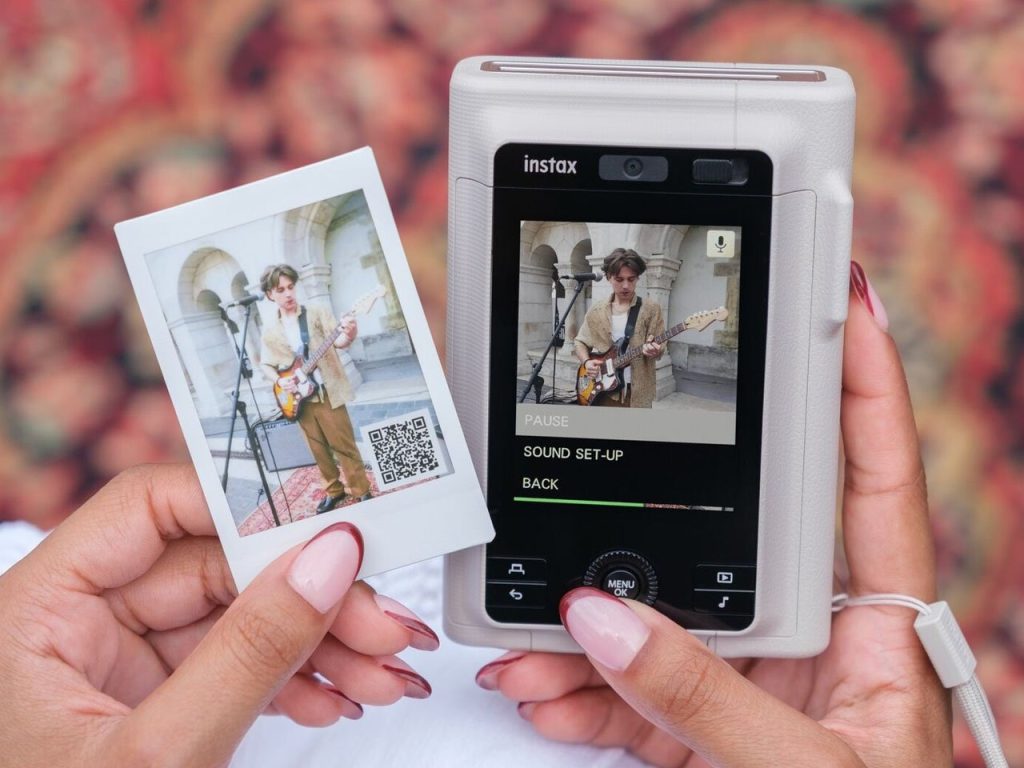 富士instax mini LiPlay+由富士胶片设计,以“让回忆可听可见”为理念。相机配备双镜头与3英寸LCD屏,支持音频录制生成带二维码照片,通过USB-C充电与蓝牙连接实现智能编辑打印。全新方正造型搭配沙米色/午夜蓝配色,配合金色柔光相纸,将数字创意与即时胶片质感巧妙融合。