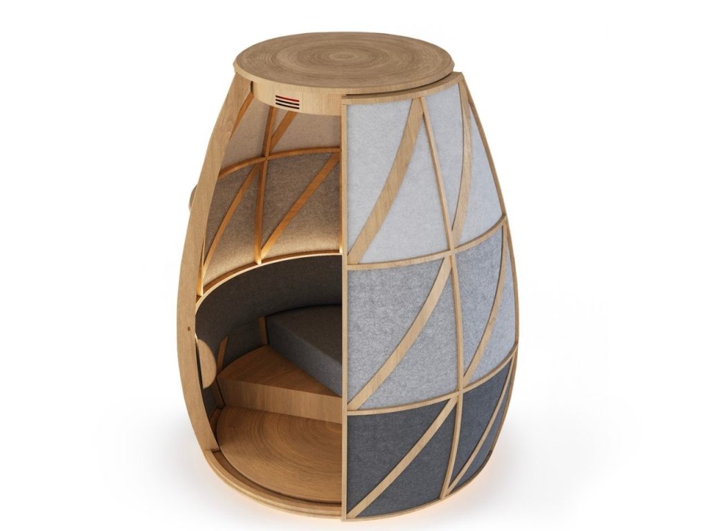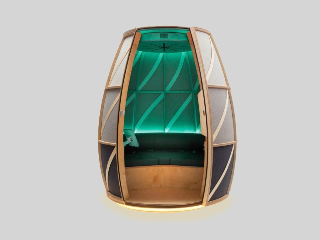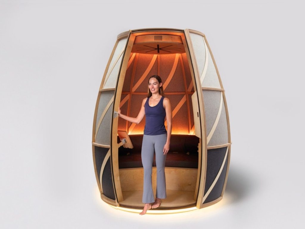 Iris Pod冥想舱由OpenSeed联合Yves Béhar等团队设计,以可持续木材与毛毡打造茧形空间,配备引导冥想、同步灯光、香薰及环绕音效系统,10分钟内助人平复压力。舱体采用100%毛毡面板与回收材料,隔音透气且环保,组装仅需数小时。企业客户如德勤、摩根士丹利数据显示,员工日均使用16次,将其视为高效重启的“精神充电站”。应用场景已拓展至医疗(癌症患者心理疏导)、教育及司法领域(警员压力管理)。尽管售价22,500美元,但其对心理健康的投资回报显著——在“永远在线”的时代,为心灵留白的舱体设计,重新定义了生产力与人文关怀的平衡。