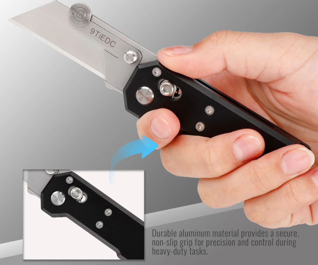 切刀折叠后长度约 3.5英寸,极具便携性,适合 工艺、纸板、胶带、绳索等多种切割任务。适合日常随身携带与家用、工作场景使用。