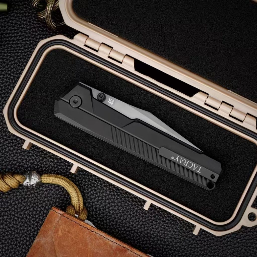刀片选用粉末冶金钢材 ZDP‑189,表面经过 DLC(类金刚石碳)涂层处理,提升耐磨性和防锈性能。