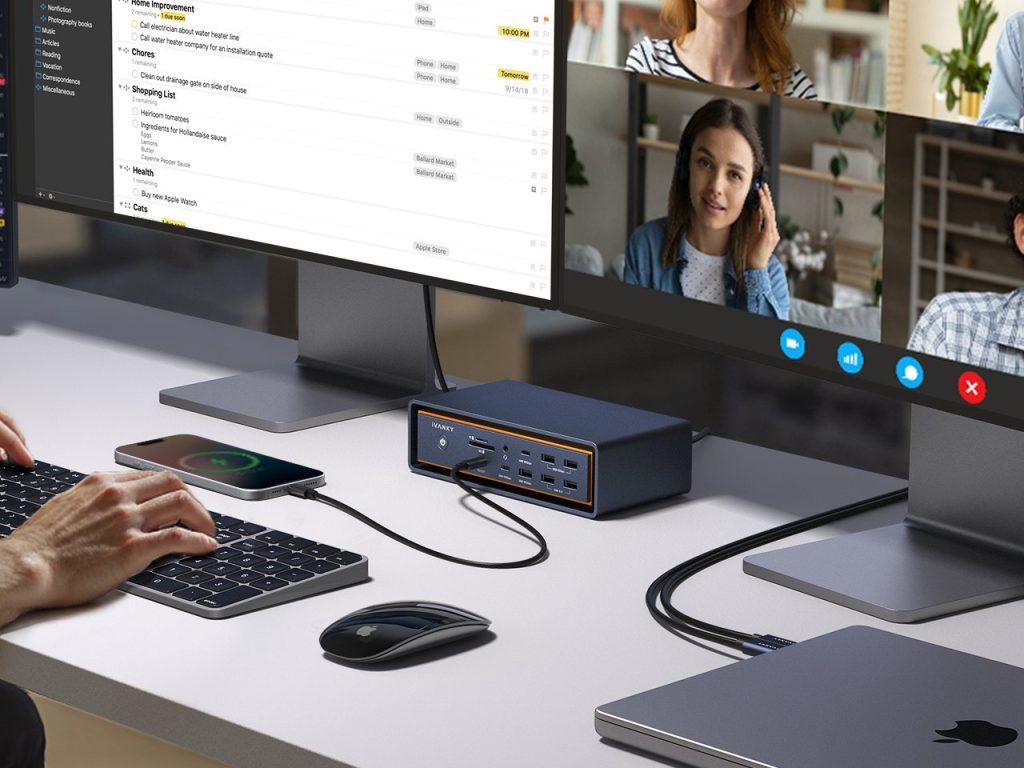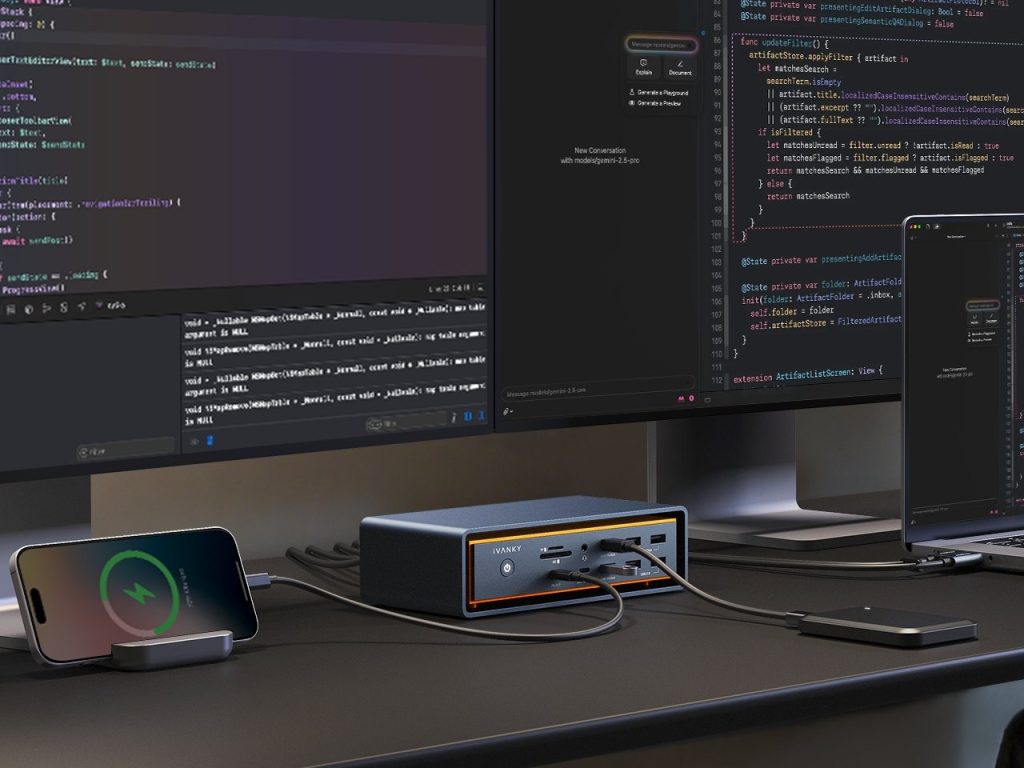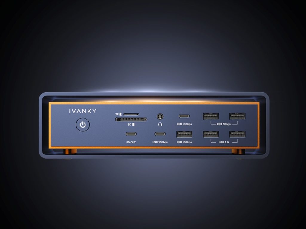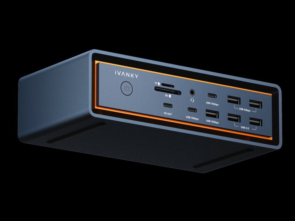 iVANKY FusionDock Max 2 Thunderbolt 5扩展坞由iVANKY团队设计,以“性能与美学并重”为理念。采用一体成型铝材与铜合金中框,配备悬浮散热结构与23个专业接口,首次实现Apple Silicon Mac原生三屏显示。120Gbps带宽与140W主机供电能力,通过主动散热系统保障高负载稳定运行。
