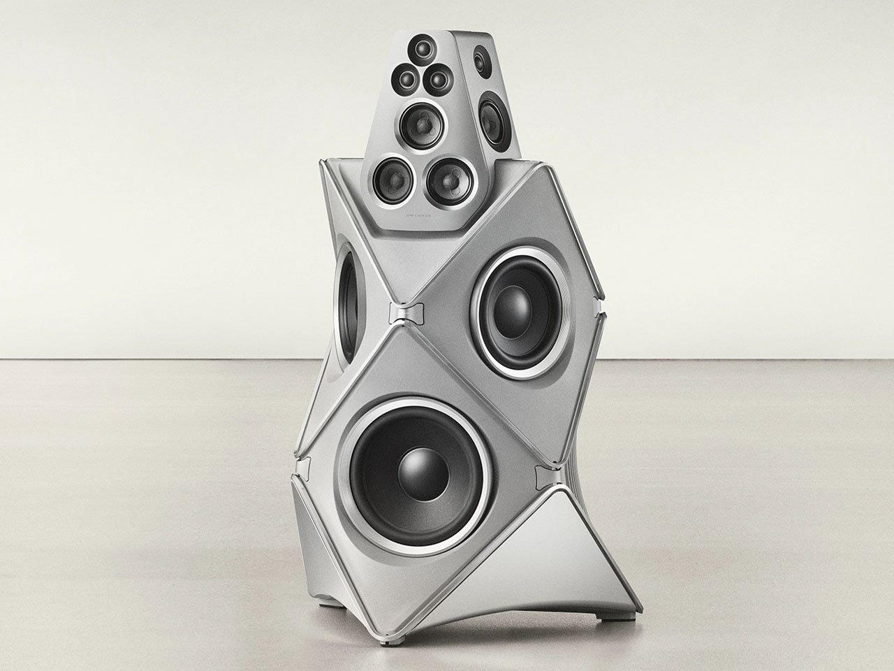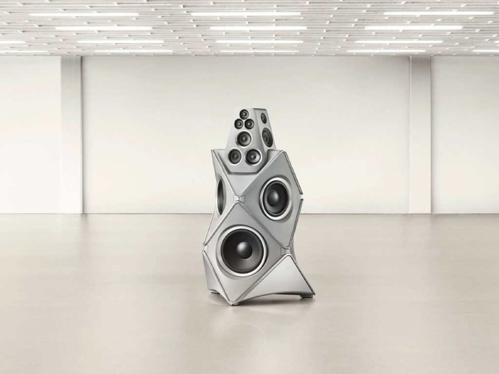 Bang & Olufsen为纪念百年华诞推出Beolab 90 Titan Edition立式扬声器,由品牌设计团队以“解构重塑”为理念打造。音箱采用65公斤铝材经火山碎屑喷砂处理,去除外壳裸露出18个驱动单元阵列,包括7个高音单元、7个中音单元及4个低音单元,通过360度环绕声学结构,将工业材质与声学机械美学融为一体。