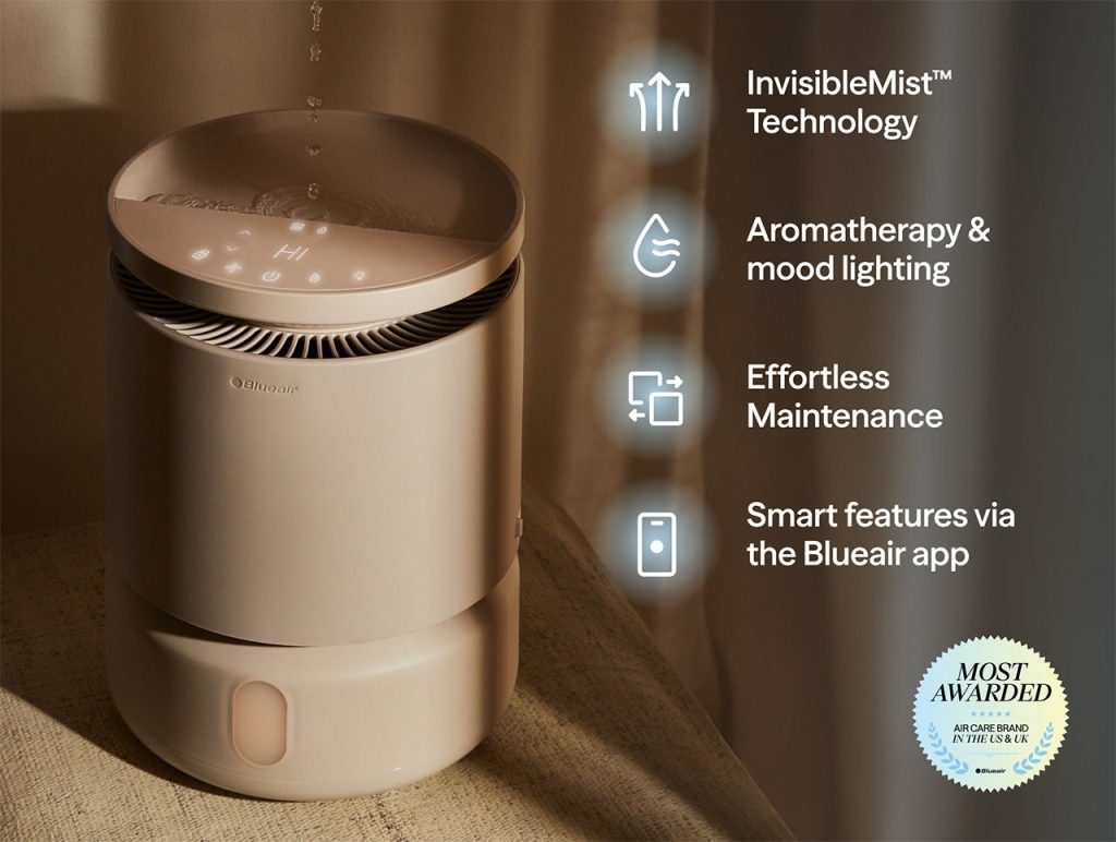 冬季干燥,加湿器常是无奈之选——笨重、有白粉、藏都来不及。Blueair 的 DreamWell 却试图改变这一处境。它采用蒸发式加湿原理,无雾无声,不散播矿物粉尘,也无需频繁擦拭桌面。机身线条柔和,织物线缆与哑光配色让它更像一件家居摆件。顶部注水口宽大易用,内置香薰石缓慢释放精油气息,底部柔光可作夜灯。湿度自动调节,滤芯可水洗,一年一换。它不喧宾夺主,而是安静融入卧室节奏,在呼吸之间,悄然提升空气与生活的质感。