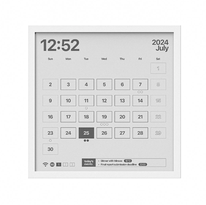 Siwoo Kim 看到路由器只是放在角落里积灰,实在令人惋惜。因此,他提供了一种新的方式,让路由器发挥框架的功能,通过搭载水墨屏模块,结合起日历闹钟等,成为用户可以与之互动的产品,让路由器成为用户生活空间中有意义的一部分。