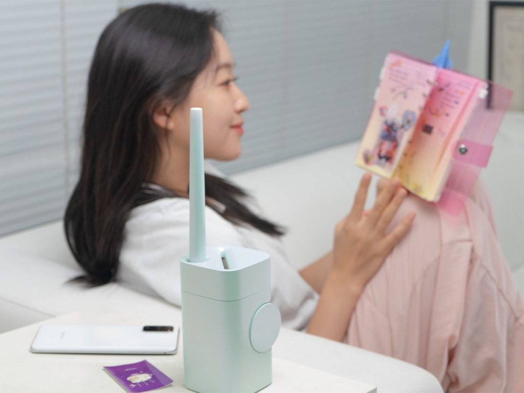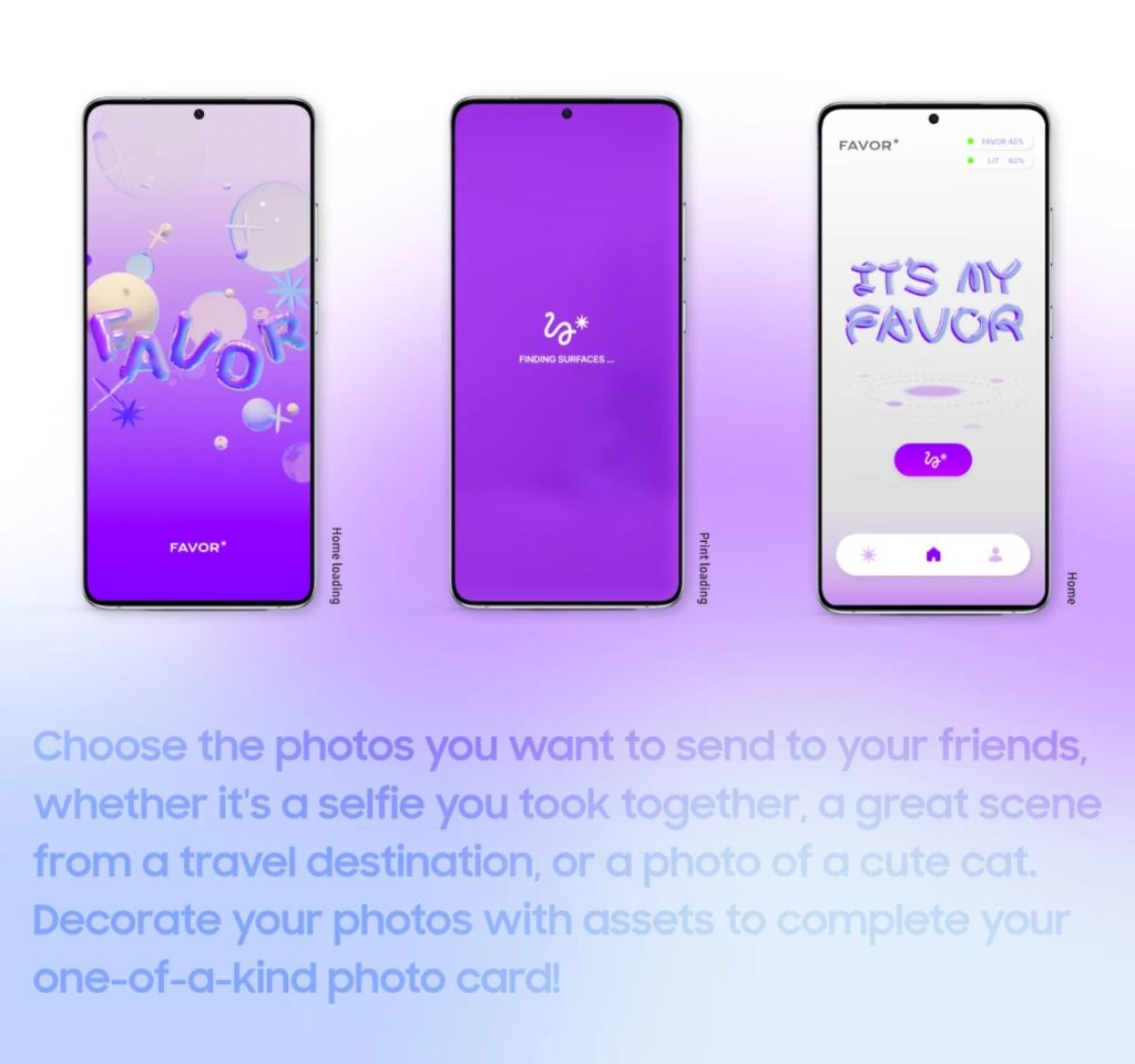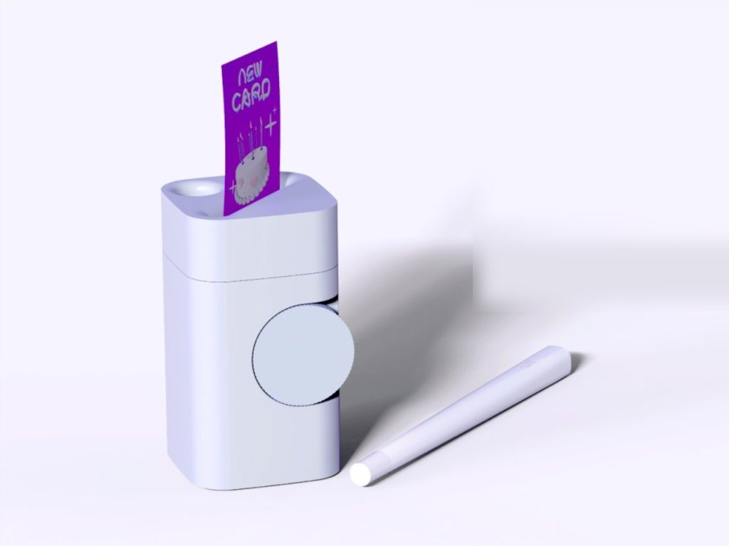 Favor AR Message 是由设计师 Junseo Oh、Seungyeon Hong、Yoojin Lee 和 Youn Taejune 共同创作的增强现实消息系统。它包含一支名为LIT的AR手写笔、一款手机App和一台微型照片打印机。其设计理念是为Z世代的数字沟通注入“仪式感”与“心意”。用户通过LIT手写笔在空气中书写,手机App会将笔迹实时转化为带有光效和粒子的浮动3D信息,此过程被称为“LITing”。最终,系统可将这份AR作品与照片结合,打印成实体卡片;收件人扫描卡片即可让隐藏的AR信息显现。硬件采用柔和的矩形轮廓、圆角设计以及淡紫和薄荷的渐变色,旨在打造亲切有趣的体验,让科技沟通重回温暖质感。