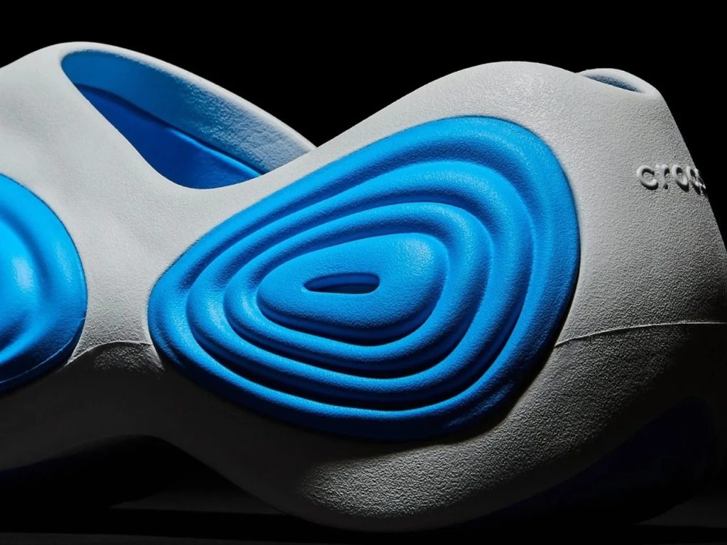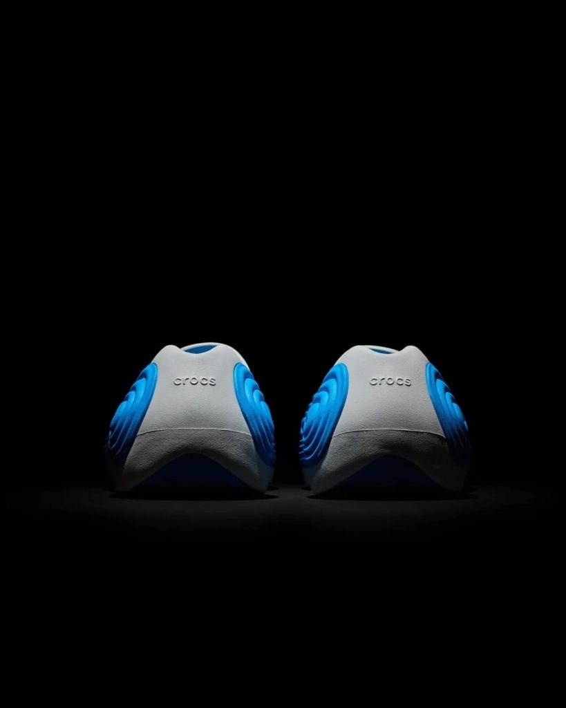 Crocs Ripple由Yeezy前产品设计总监Steven Smith(40年行业经验)首作,摒弃鞋带与后跟带,套脚式设计。鞋身两侧波浪纹融合Croslite+Mellow泡棉科技,鞋底TPU支撑片增稳,灰蓝配色灵感源于水律动,雕塑感未来风。2025年12月5日迈阿密Flight Club线下首发(设计师亲临),2026年初Crocs.com发售,以设计升级延续品牌舒适内核,引行业关注。