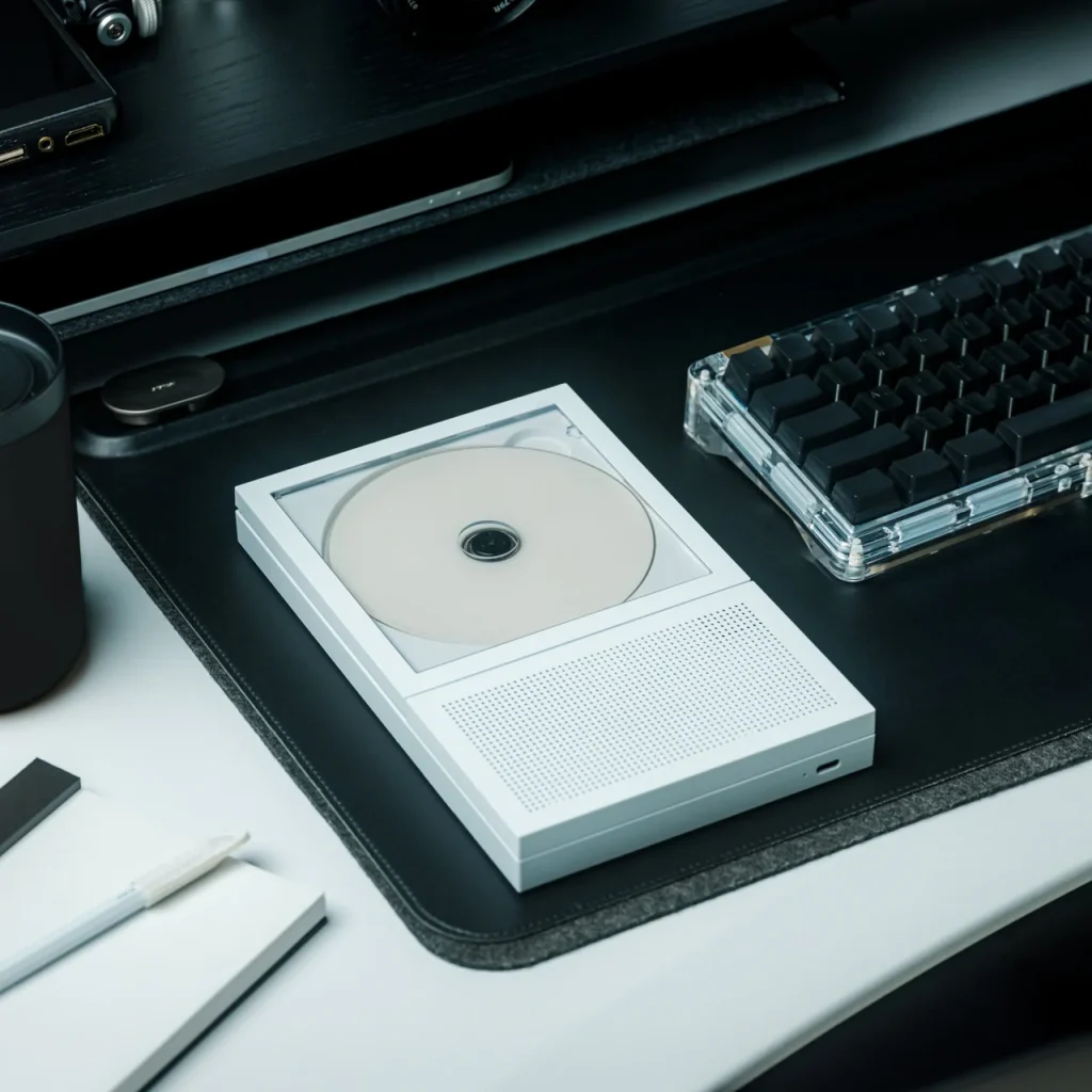 Portable CD Cover Player 以极简设计重拾实体音乐的完整体验。声音之外,封面也是作品的一部分。