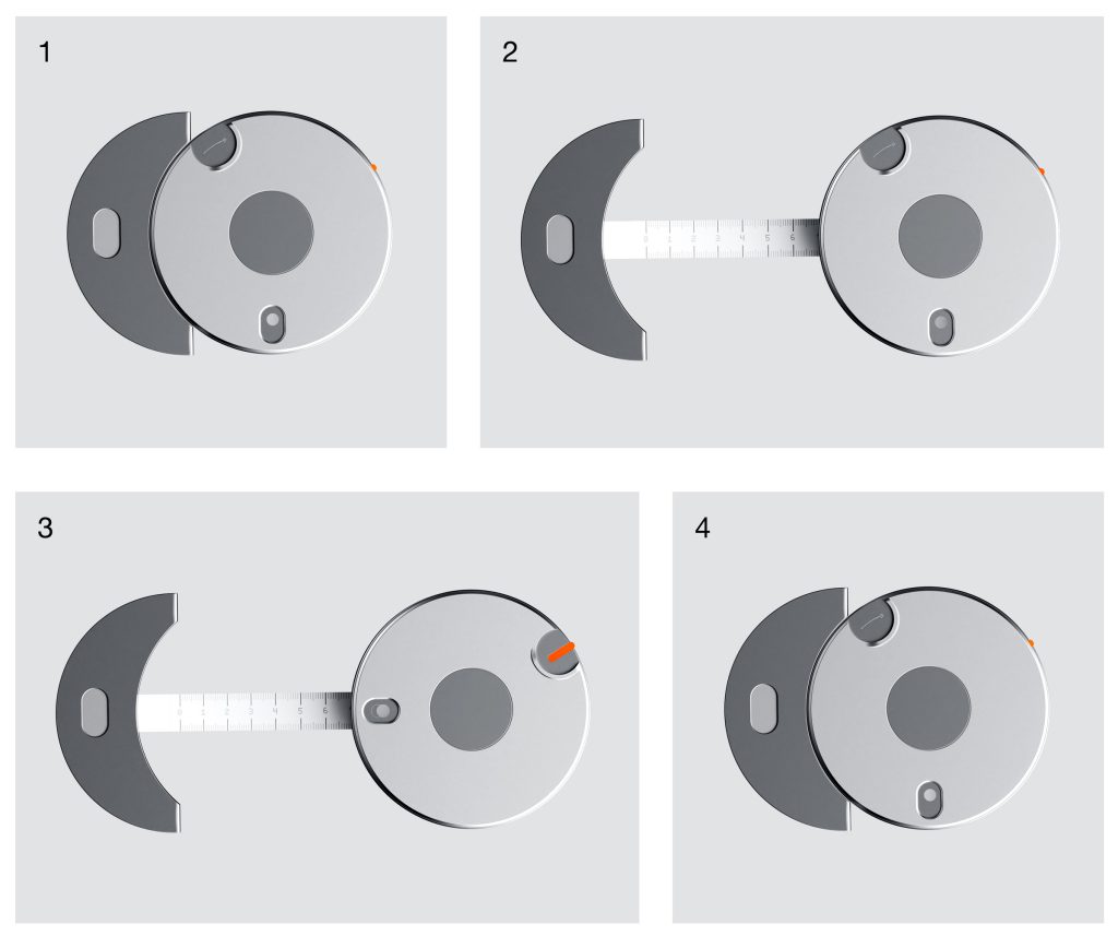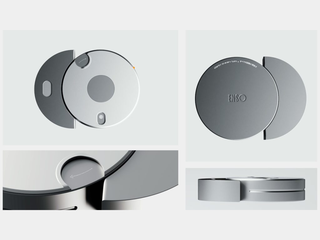 Enso卷尺以“测量作为仪式”作为核心命题,通过重新设计测量的手势与触觉反馈,使精确操作具备节奏与专注感。其双重圆盘结构源于禅宗“圆相”与老式拨号电话的阻尼体验,通过旋转与滑动动作替代传统的拉拽方式,使卷尺的露出、收纳与定位形成更连贯的交互链。刻度带采用渐变视觉方案,以连续的色彩深度增强相对距离的识别性,弱化机械读数的生硬感。机身的重叠圆形几何与紧凑体量使其具备桌面物件般的存在感,强调材质触感、边缘引导与手部肌肉记忆的精准配合。整个设计摒弃智能化,而聚焦于交互、阻尼、节奏与心理投入,将卷尺从工具属性扩展为一种具有仪式感的微型日常工艺体验。