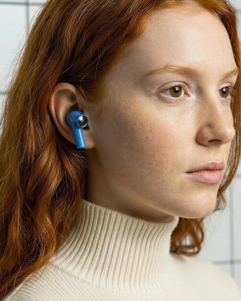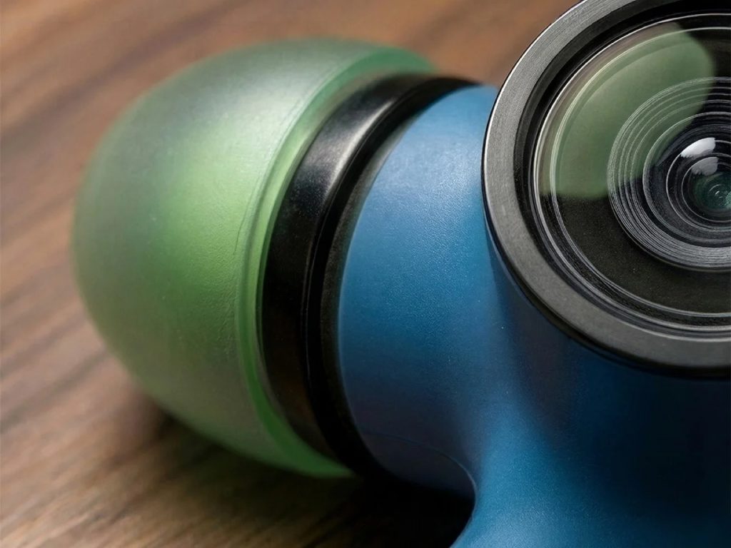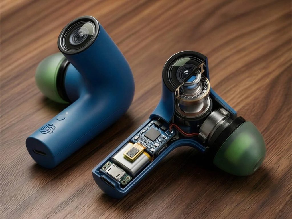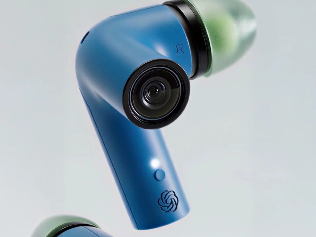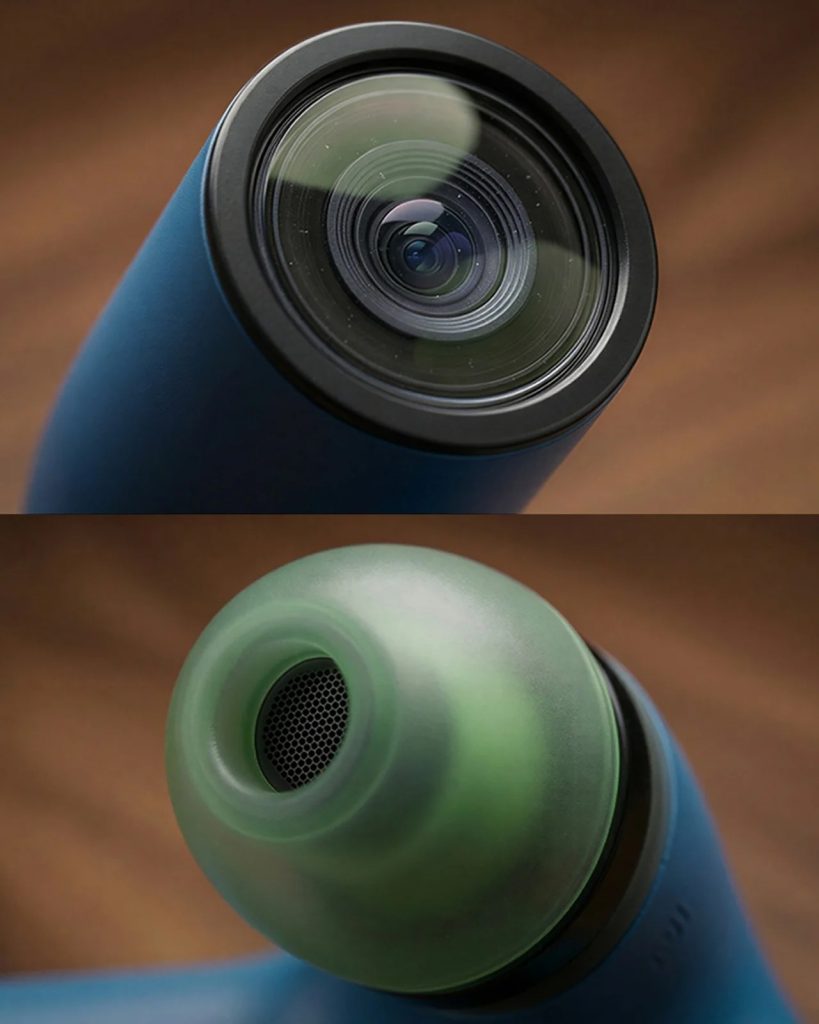 内置摄像头真无线耳机,耳塞柄带微型镜头,结合ChatGPT提供视觉AI助手:朗读菜单、解读路标、指路等。工业设计科幻,镜头如运动相机,彩色半透明外壳显活泼。功能依赖手机处理(免耳塞过热),但续航仅2-3小时(音频+摄像耗电),延迟存挑战;视野需转头(耳柄固定指向),非全天候用。社交接受度高(比眼镜不具侵略性),适合短时任务(如逛展、候机),让AI从被动响应变主动感知环境。