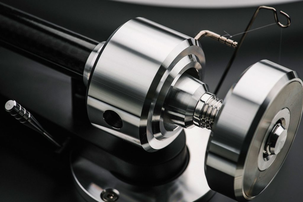 Pro-Ject Debut Reference 10唱片机延续品牌三十余年来对模拟音频的持续探索,是其首次采用碳纤维/铝合金混合唱臂的型号。产品在结构与材料上追求稳定性与低共振表现:磨砂半透明亚克力主转盘提供良好的转动惯量与视觉层次,钻石切割铝合金唱臂座兼具机械精度与工艺质感。皮带驱动结构保持简洁可靠,电子调速与迷你XLR平衡输出则体现当代使用需求。整体外观以哑光黑与亚克力饰件构成,既呼应 90 年代的理性工业设计语境,也避免复古的表层化表达。这是一款强调“操控过程”与“聆听仪式”的唱盘,而非单纯的声音输出设备。