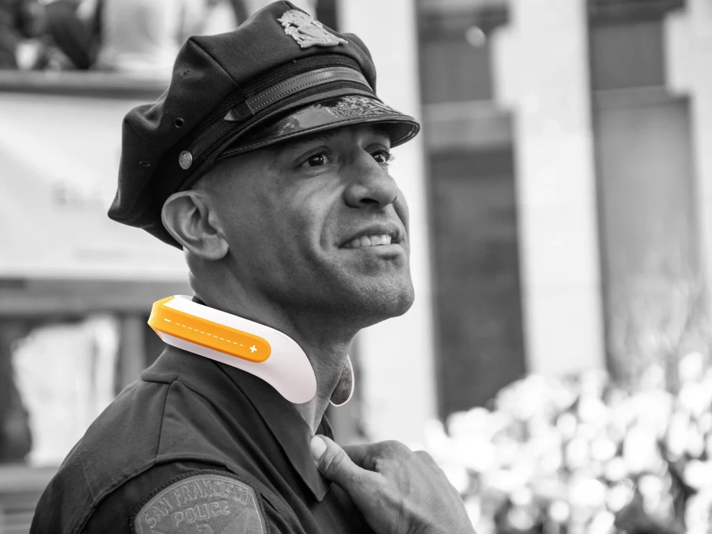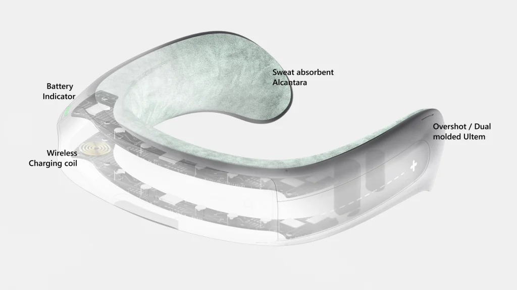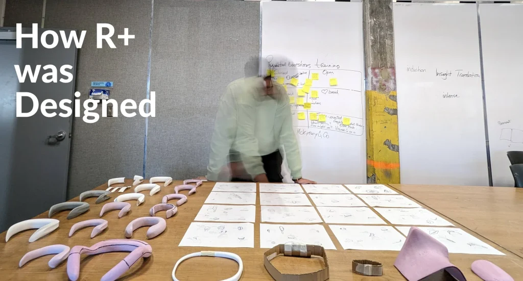 R+ 通过重新构思通信设备的形式与使用方式,将无线电集成在一个贴合颈部的软性可穿戴结构中,使通信始终触手可及并减少对身体的占用空间,从而最大限度提升效率与安全。R+ 简化交互操作,通过直觉式手势触发或简单按键进行频道切换与音量控制,避免了传统设备对手部的过度占用。