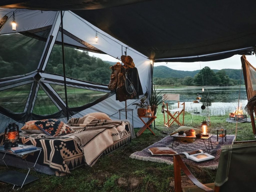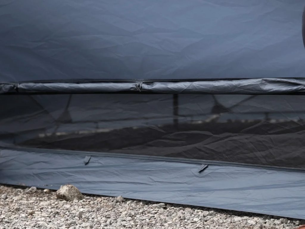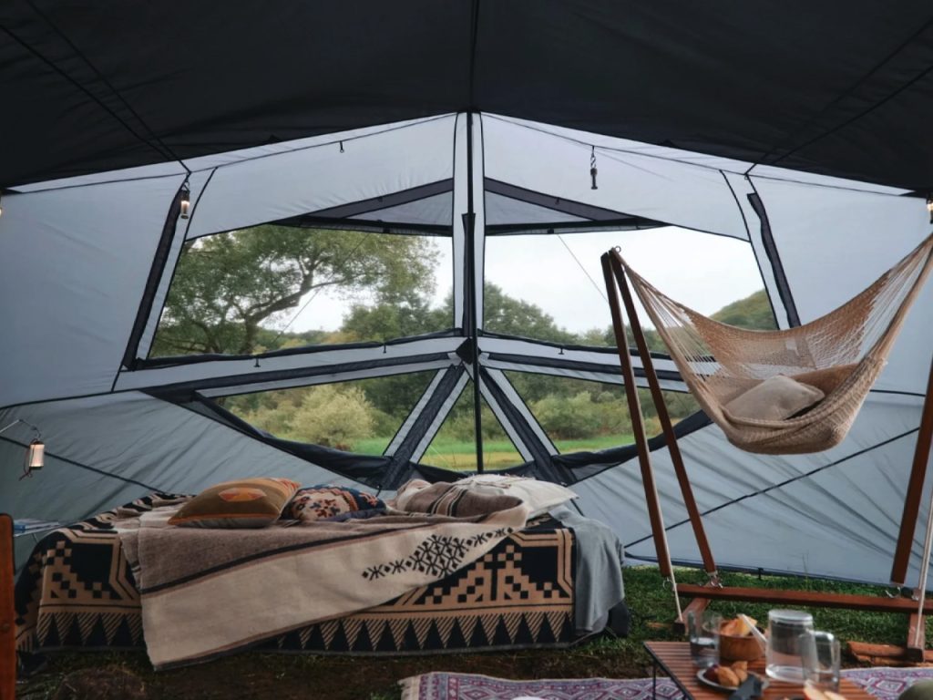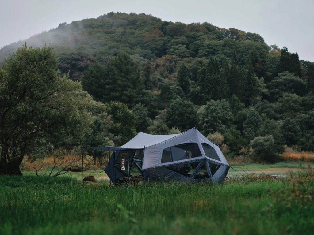 Grayhus是一款以多面体几何为核心特征的高端露营帐篷,其造型更接近空间装置而非传统圆顶结构。棱角分明的墙面不仅塑造了强烈的视觉存在感,也为大尺寸开窗提供了结构基础,使自然景观被有意识地“取景”进帐篷内部。帐篷采用模块化围护逻辑,可在通风天篷、防蚊空间与全封闭防风暴模式之间切换,经测试可抵御约55英里/小时强风。取消内置底布的设计弱化了“标准搭建方式”,释放了内部布置的自由度,使其更接近半永久性的露营空间而非一次性庇护结构。整体定位偏向豪华露营与长时间驻扎,强调造型表达、空间体验与环境适应性的平衡。