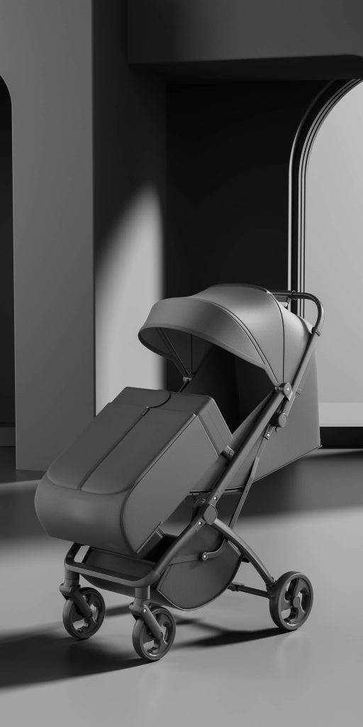 该婴儿推车以安全与舒适为核心,融合现代科技与极简设计,打造高品质亲子出行体验。整体造型线条流畅、克制优雅,座舱宽敞柔软,兼顾坐卧两种姿态,为宝宝脊背与成长提供科学支撑。创新折叠结构让扶手在收纳时自然隐藏,折叠后如行李箱般轻巧易提,显著提升出行便利性。推车配备越野级减震系统,可有效过滤城市石板路与乡间小径的颠簸,保障宝宝安稳乘坐与睡眠质量。辅以耐用材质与二维码智能指引,方便家长随时获取使用与维护信息。这不仅是一辆推车,更是面向现代家庭的智能出行解决方案。