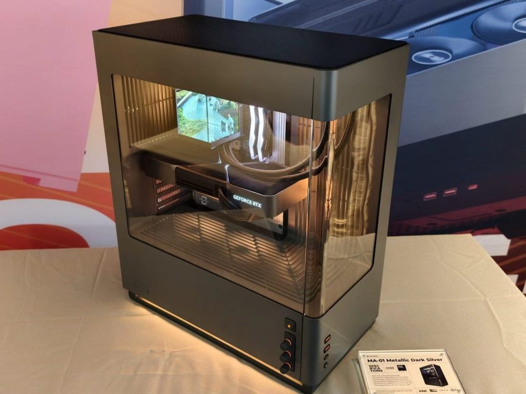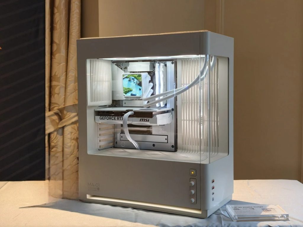 CyberPowerPC 的 MA-01 不靠 RGB 炫光抢眼,而是用克制的设计说话。它把风扇、线缆、螺丝全藏进精巧结构里,只让 GPU、内存和散热器如展品般静静陈列。双曲面无框玻璃、织纹钢网顶板、模拟旋钮调光——细节安静却有分量。更难得的是,它真的“轻声细语”:优化风道与吸音结构,让高性能运行时也不吵人。三种配色适配不同桌面气质,从北欧风书桌到工业感工作室都能融入。MA-01 证明了一件事:一台性能猛兽,也可以是桌上一件耐看的家具。