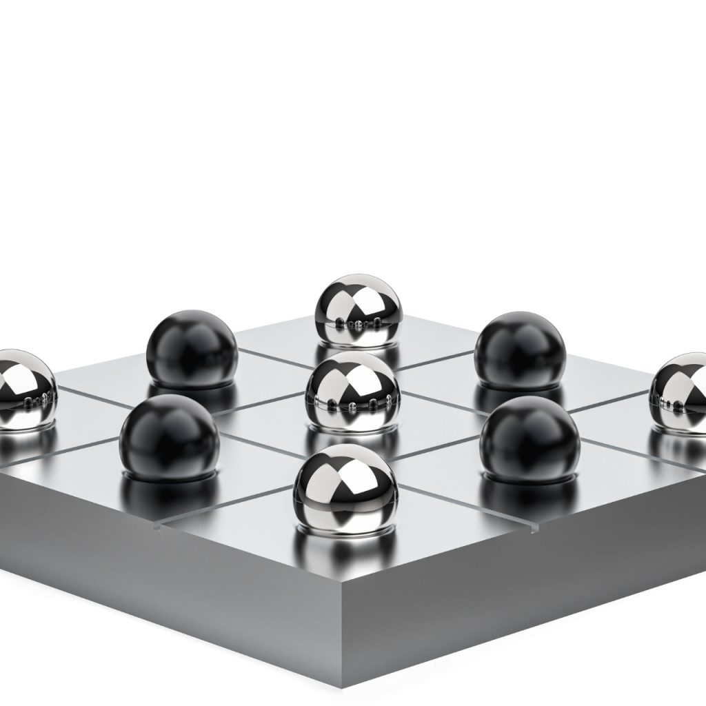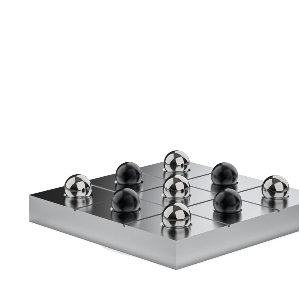Bionic井字棋套装将最简单的桌面游戏转化为一件可触摸的金属雕塑。底座由整块铝材CNC精密加工而成,网格直接切削成型,无涂层与装饰,仅保留锋利而克制的线条。棋子由两种截然不同的材质构成:五枚镜面抛光不锈钢“O”,与五枚黑色阳极氧化铝“X”,在重量、触感与反射质感上形成鲜明对比。设计刻意放慢使用节奏,强调拿起、放置与对弈过程中的触觉体验,而非胜负效率。作为定制生产的物件,它更接近一件可互动的艺术品,而非传统意义上的玩具,将“停下来玩三分钟”本身变成一种被认真对待的生活仪式。