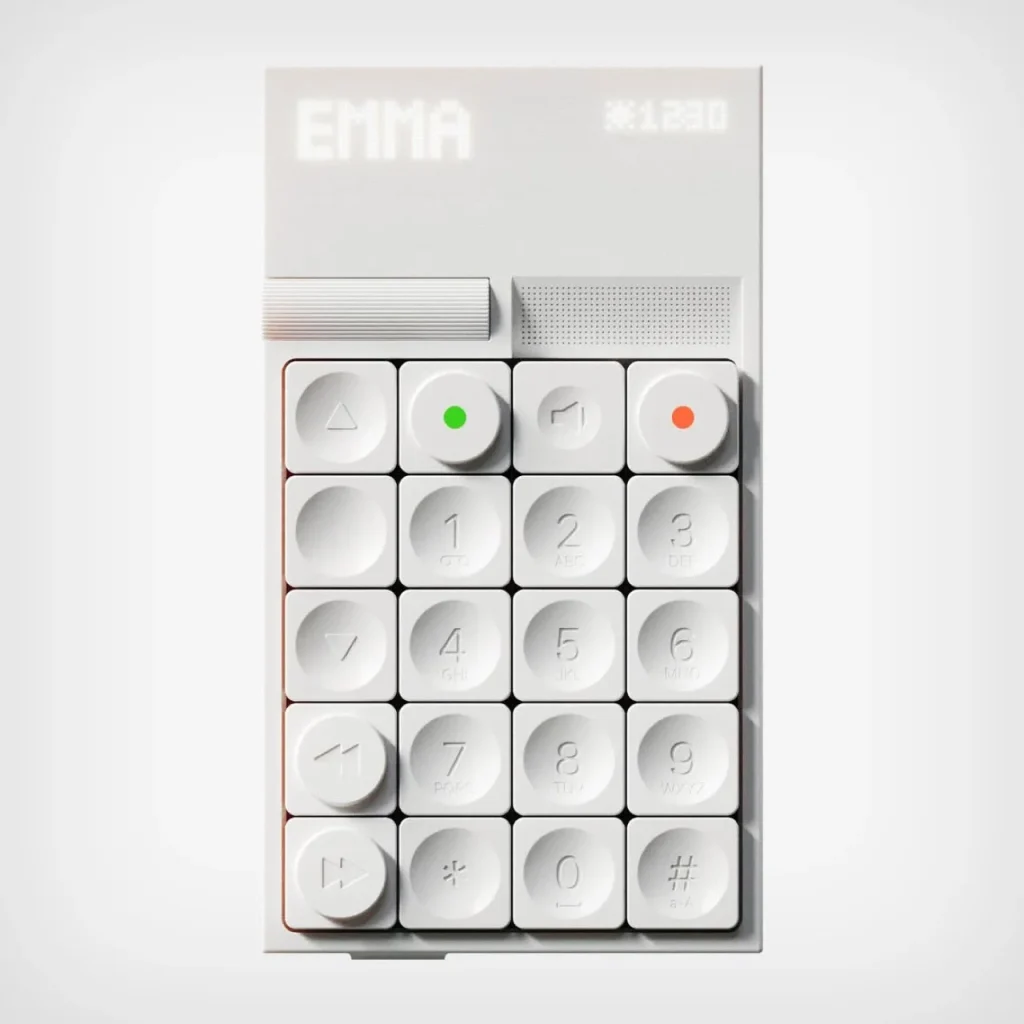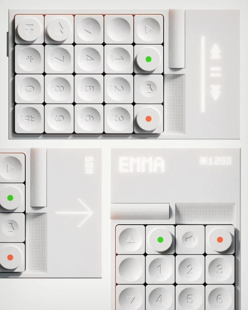 这台手机连名字都没有,却让人一眼记住。由巴黎工业设计学生 Keziah Mendjisky 打造,它没有屏幕、没有社交软件、没有无尽滑动——只保留通话、时间、天气和基础功能。机身如一块温润白砖,按键布局回归电话本源:数字从上至下排列,绿色接听、红色挂断,中间是扬声器键,侧面滚轮快速翻联系人。背光点阵屏像 Ember 保温杯的显示,极简却清晰。灵感来自 Braun 的克制与 Teenage Engineering 的趣味,它不追求智能,而是用触感和逻辑重建“打电话”这件事的本质。在这个信息过载的时代,它像一记温柔提醒:有时候,少一点,反而更自由。