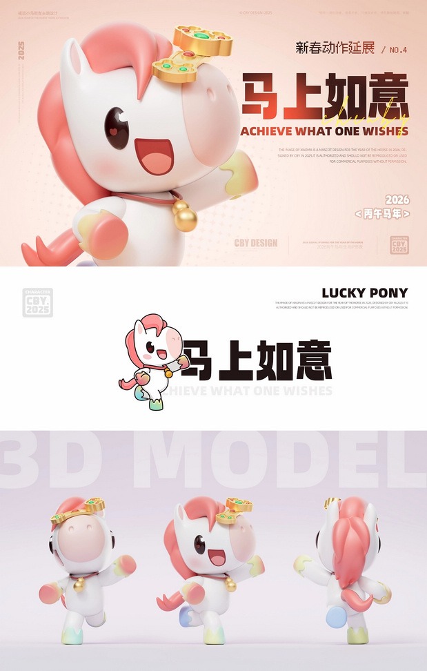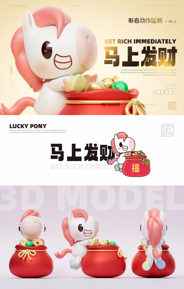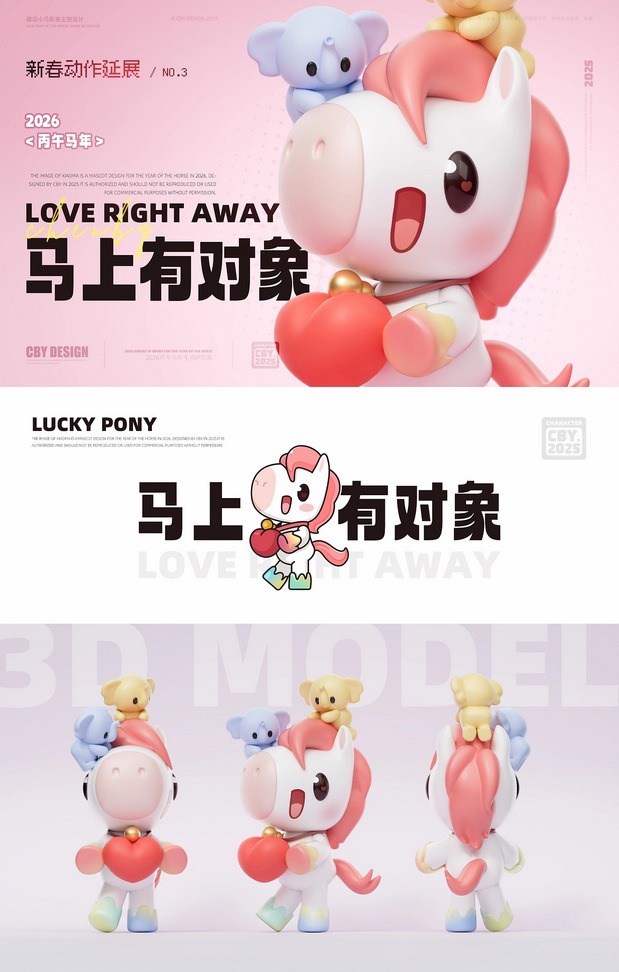 “福运小马”这款3D生肖IP形象活泼又讨喜,将马年瑞气与吉祥寓意融于形体与表情之中。它既可爱又富有文化符号感,让传统生肖在当代潮玩语境下焕发新生命力,是设计与文化结合的有趣尝试。