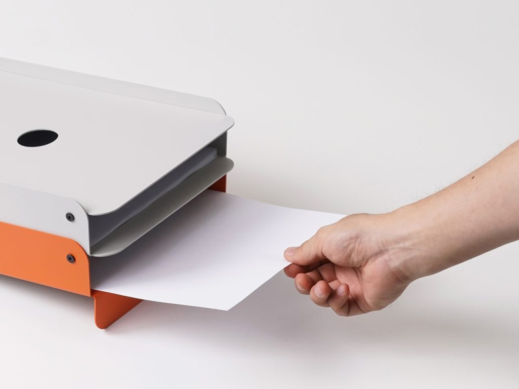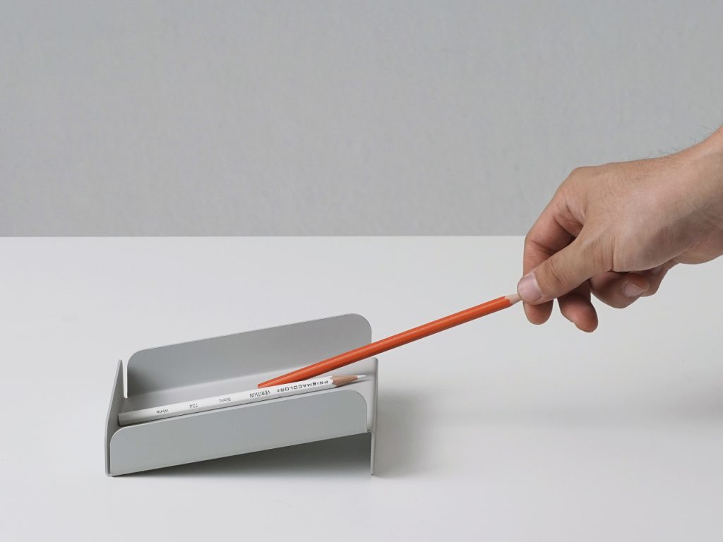 桌面乱,不是你懒,是收纳工具没懂你。韩国设计师 Hoyoung Joo 的 Foldy 系列,用1.6毫米金属板一次折弯成型,不做花哨结构,只解决真实痛点:纸张前滑?斜面让它自动归位;总找那支常用笔?前方小平台给它“专属座位”;名片散落?微倾角度让它们乖乖叠好。圆角打磨、哑光涂层、低饱和配色,让冷金属有了温润手感。它不强迫你“极简”,而是默默配合你的习惯——堆文件、随手放笔、收名片,一切照旧,只是更顺手一点。Foldy 证明:好设计不在改变人,而在理解人。