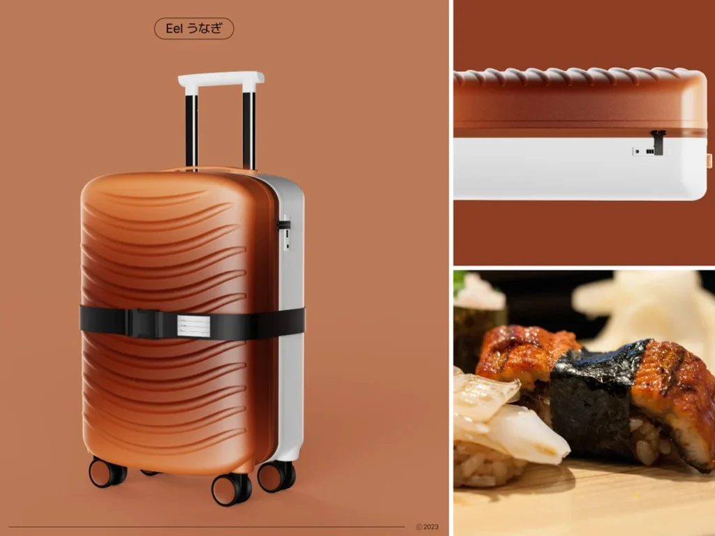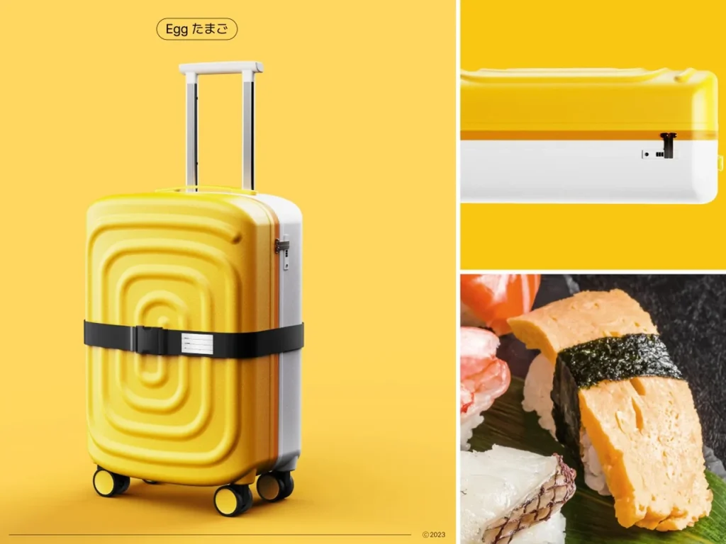 谁说行李箱只能黑灰白?这款 寿司系列旅行箱 把“鱼生”背上身——白色箱体是温润米饭,顶部凸起纹理还原玉子烧的螺旋、鳗鱼的油亮、三文鱼的鲜橙肌理,连捆带都化身海苔,一圈缠绕,还兼作行李牌。设计灵感来自寿司的极简哲学:去繁就简,尊重材质,让功能与趣味自然融合。它不靠logo说话,而是用食物般的亲和力,在机场传送带上一眼被认出。对日本设计迷来说,这不仅是箱子,更是移动的生活美学提案——把日常出行,变成一场轻盈的仪式。