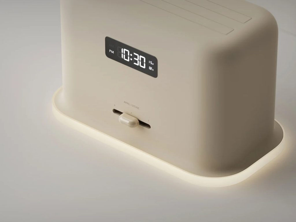 Phone Toaster是一款形似烤面包机的床头充电消毒设备。睡前将手机垂直放入顶部插槽,拉下滑杆,即可在充电同时进行紫外线杀菌。正面数字时钟显示时间,底座散发柔和夜灯。清晨闹钟响起时,手机会像烤好的面包般“弹出”,提醒你新的一天开始。它提供粉蓝、鼠尾草绿等多种柔和配色,将给手机充电消毒这件小事,变成一种温暖有趣的睡前仪式。
