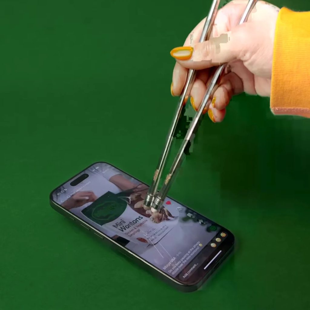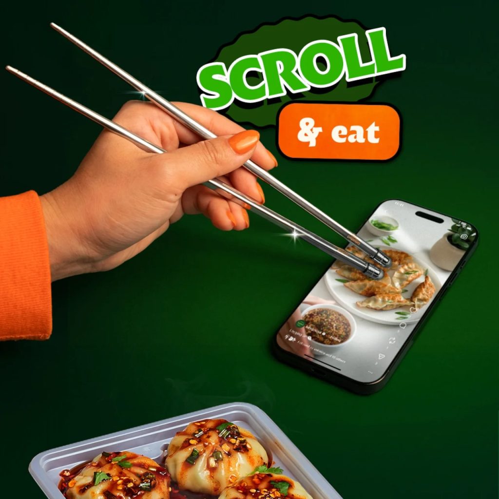 韩国美食品牌bibigo推出了一款名为ScrollSticks的双头筷子,专为习惯边吃饭边刷手机的人设计。它一端用于夹取食物,另一端配有可拆卸的触控笔尖,方便在电容屏上点击、滑动,有效防止油污和酱汁弄脏屏幕。筷子主体为金属材质,可拆卸清洗,支持洗碗机。据品牌调研,96%的美国人会在用餐时使用手机,这款产品旨在解决由此带来的屏幕脏污和使用不便。ScrollSticks作为“美食娱乐”概念的衍生品,将餐具与触控工具合二为一,限量发售。