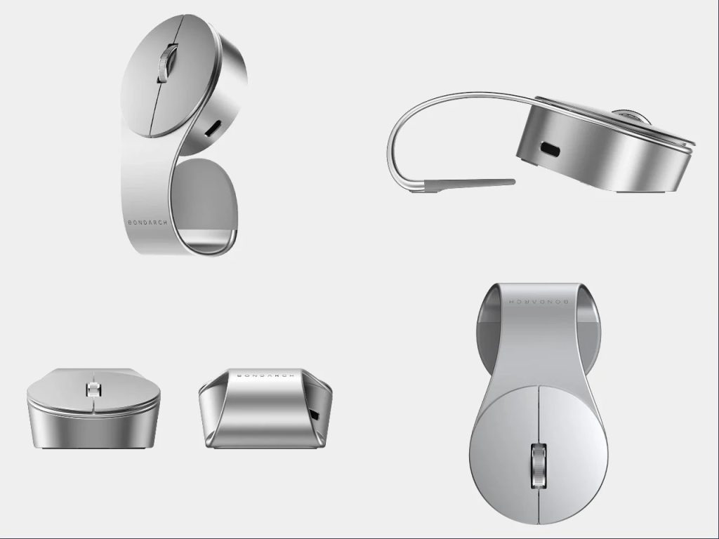 BondClip 是由 BondArch 团队与设计师 Sangmin Yu、Rinchar Ren(HNDESIGN)共同打造的一款无线鼠标,其核心理念是 “让鼠标成为笔记本电脑不可分割的一部分,彻底解决配件丢失问题” 。鼠标采用独特的 G 形环状结构,通过精密弯曲的铝合金机身与底部硅胶垫的摩擦力,可牢固夹持在笔记本电脑或平板电脑边缘,随设备一同移动。它重 72 克,支持 2.4GHz 与蓝牙 5.4 双模连接,DPI 可调范围 600 至 3600,内置电池续航约 130 小时。其设计旨在将鼠标从需要单独收纳的配件,转变为始终与设备同行的工具。