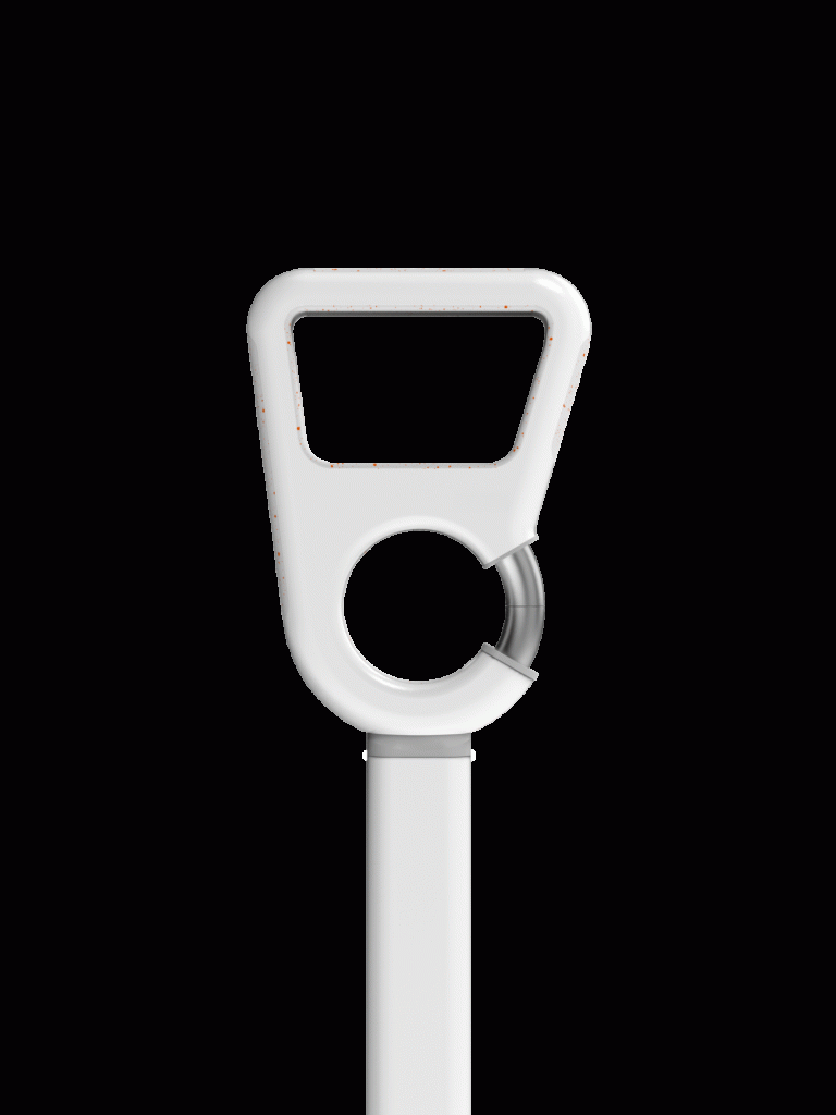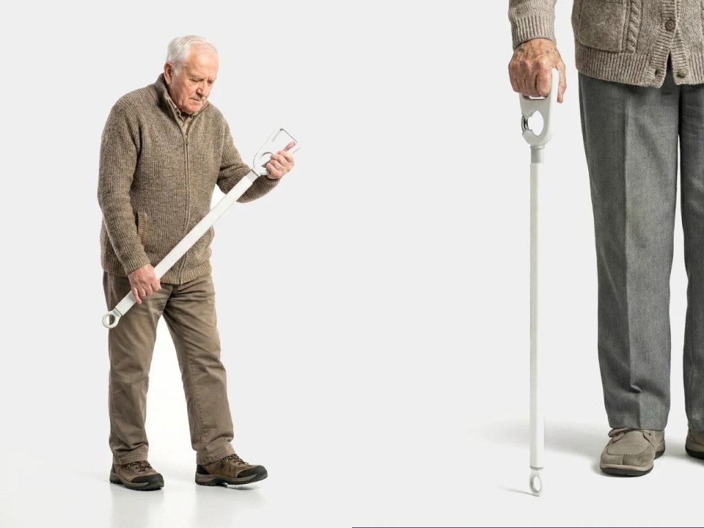 SafeGrip是由设计师Batuhan Duran创作的一款模块化安全把手,其核心理念是“用一件低调而多功能的工具,化解日常生活中那些不起眼却危险的身体失衡瞬间”。它外形简洁,可作拐杖使用,宽大的手柄开口与柔和边缘适配不同手型,减轻手部压力。内置隐藏式挂钩可轻松挂起购物袋,解放双手并稳定重心。其独特的伸缩环系统能牢固勾住桌边或椅边,将附近家具变为临时扶手。高度调节带有刻度指示,方便快速找回适合档位。整体设计旨在将医疗辅助工具转化为融入日常、值得随身携带的可靠伙伴。