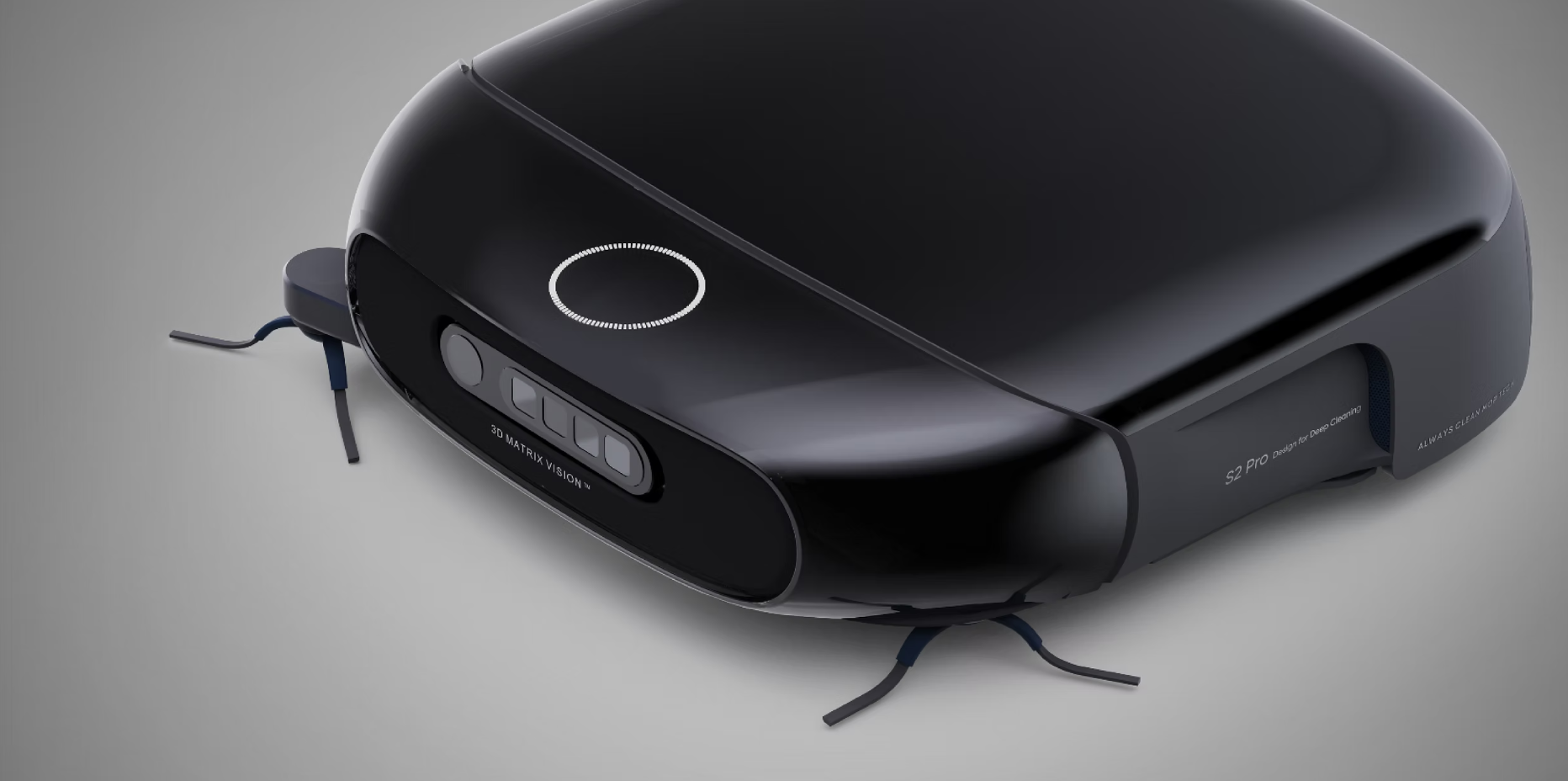 通过简洁且富有未来感的外观语言重新定义机器人吸尘器的视觉与交互表达,在传统圆形结构基础上探索更动感、更具功能性表达的设计可能性。