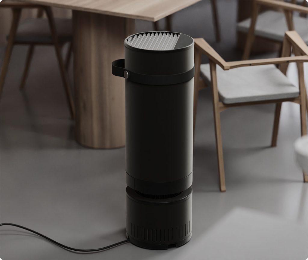 Heatbit推出的Maxi系列是将比特币挖矿设备转化为家用设备的产品设计。设备利用矿机运行时产生的大量热量作为室内供暖来源,同时将算力用于比特币挖矿,使能源消耗在供暖之外产生额外价值。产品采用航空级铝制锥形外壳,内部集成矿机模块、HEPA 13级空气过滤系统以及CO₂与VOC传感器,实现供暖与空气净化的复合功能。两款产品功率均为1500W,其中Maxi算力约40 TH/s,Maxi Pro为60 TH/s。设备通过专利气流结构与降噪设计控制运行环境,并具备过热保护机制。该设计尝试将高能耗计算活动与家庭基础需求供暖、空气净化结合,从而重新分配数字技术产生的能量。