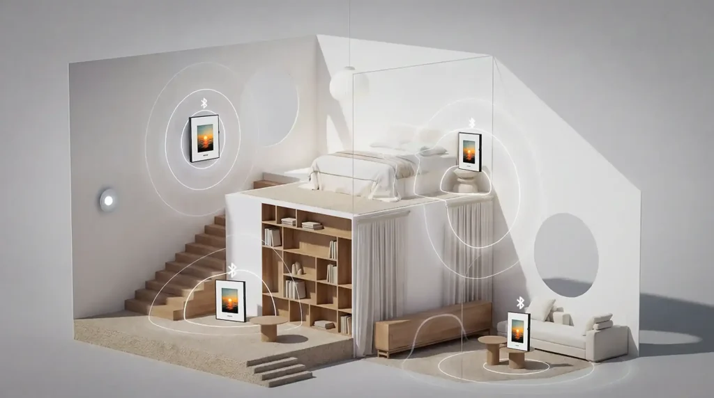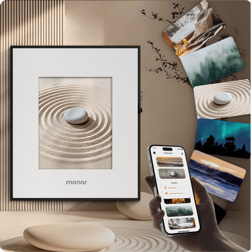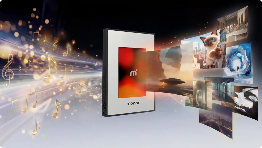 Monar Canvas Speaker是一款将高保真音响与数字艺术屏合一的壁挂式设备。它采用4:5的画布比例,配备八种可更换画框,能像艺术品一样融入墙面。内置6个驱动单元(含钛膜高音与低音单元)和2.2声道功放,在4.9厘米超薄机身内实现20Hz-20kHz频响。播放音乐时,屏幕会随节奏动态显示歌词或视觉效果;静置时可循环展示超5万幅世界名画或个人照片。内置AI工具支持通过文字或音乐生成图像。产品在Kickstarter众筹中,售价799美元起。
