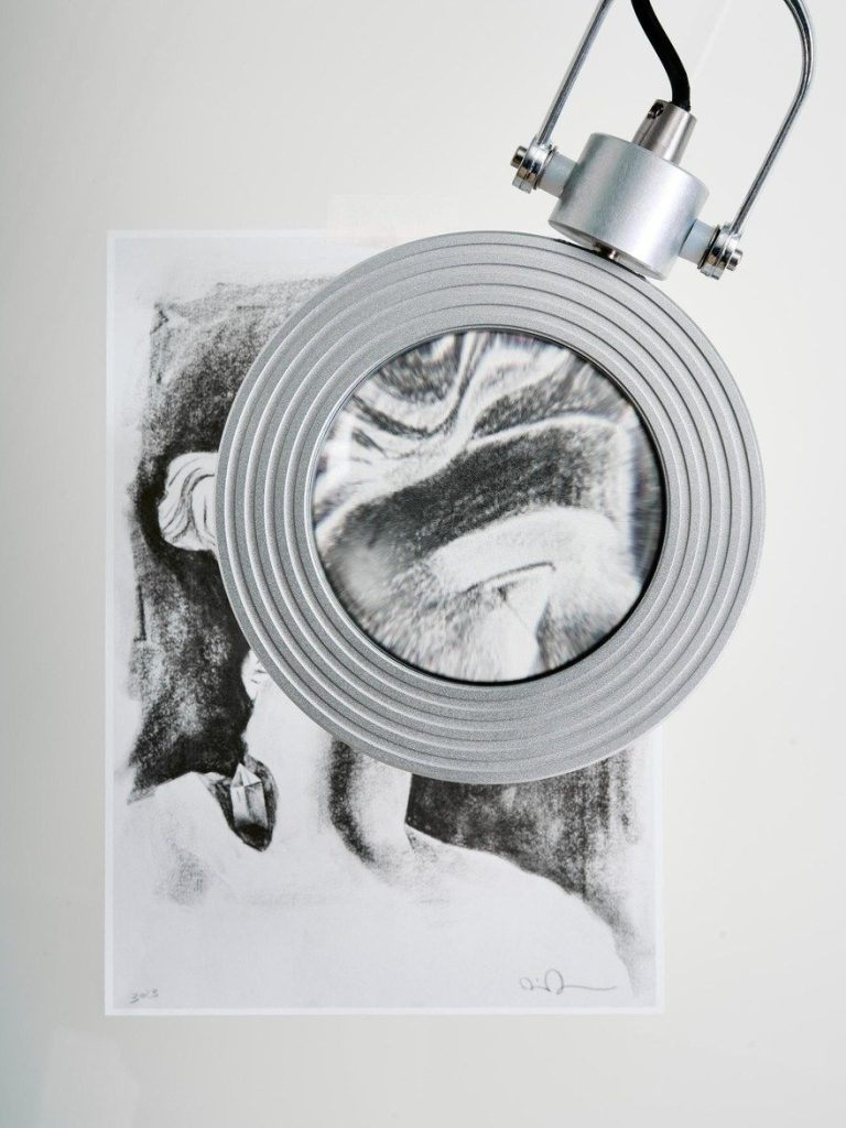 艺术家Daniel Arsham说:"灵感属于业余爱好者。我是职业艺术家,每天醒来就去工作。"为执行小尺度炭笔和石墨画,他委托马德里工业设计工作室Caliper打造了一张定制绘图桌。背光表面+放大灯,专为精细创作而生; CNC加工的阳极氧化铝机身,喷砂处理,清晰利落。纸、炭笔、工具各有归处,收纳方案贴着使用习惯走;充电口与光源控制嵌入桌面,伸手可及。马德里造好,整桌运往纽约。它不是那种什么都能干的家具,只为一个人、一种创作方式、一间工作室而存在。