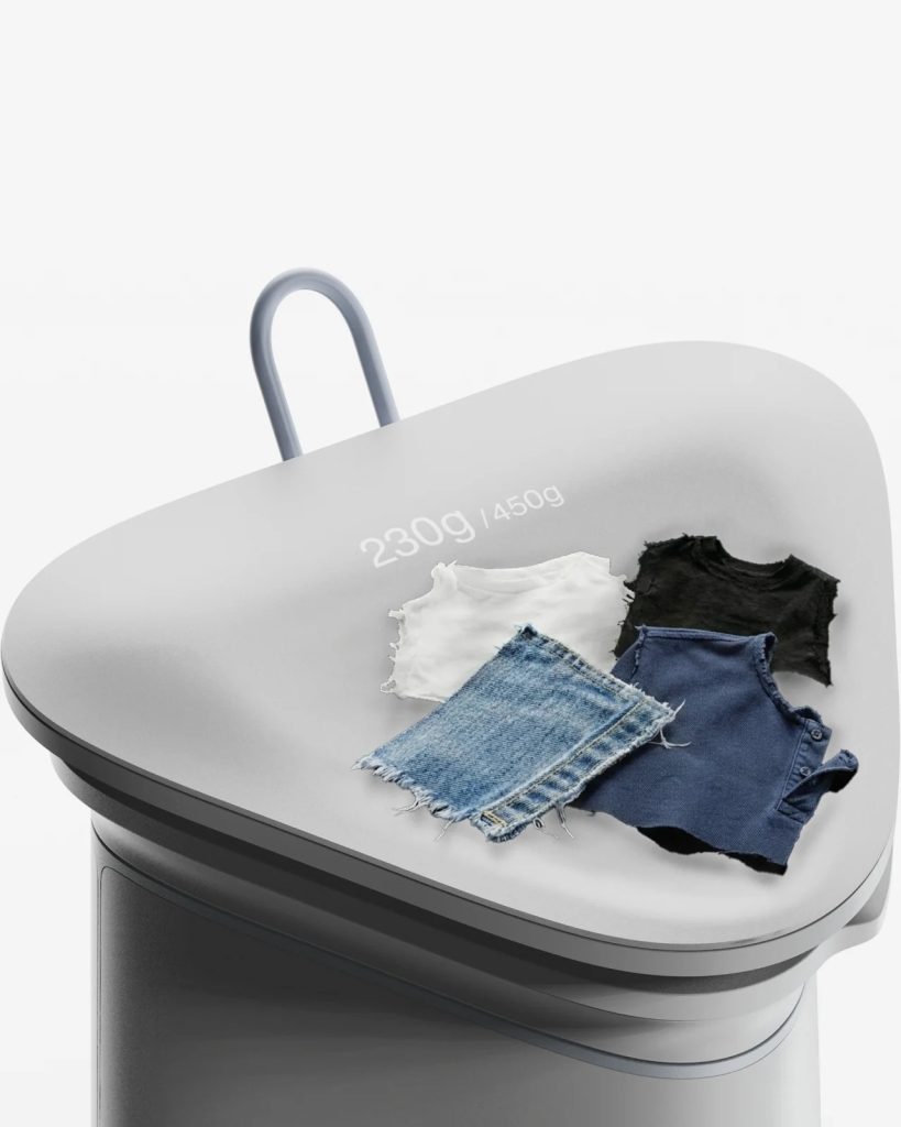 ByBye是由设计师Kim Kyung-wook、Kim Soo-ah、Kim Ga-yeon和Shin Myung-kyung共同创作的一款概念性家用衣物回收设备,其核心理念是 “将告别旧衣的情感,转化为孕育新生的仪式” 。这台台式机器通过研磨、高温压制等工艺,将不再穿着的衣物转化为兼具水磨石质感的花盆,整个过程约十分钟。机器内部设有碎布机与模具压板,配套应用程序可记录转化数据。最终成品保留原衣物的色彩痕迹,呈现出独特的混合纤维纹理,让纺织废料不再是“垃圾”,而是可供植物生长的容器与承载记忆的物件。