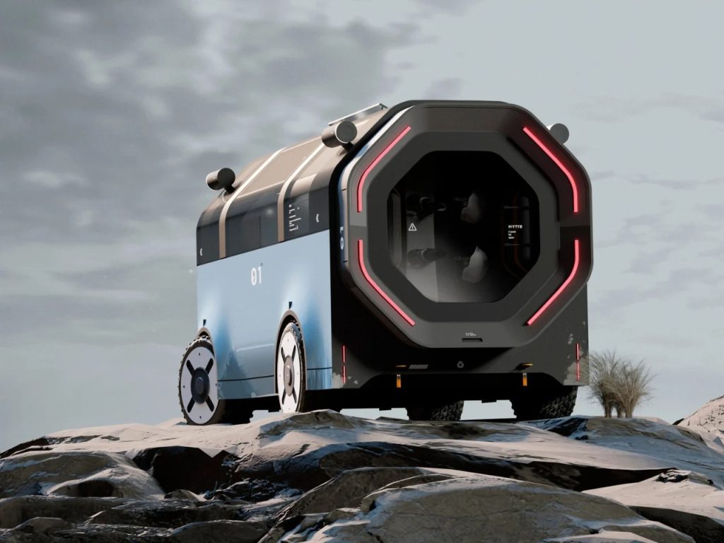 HYTTE是RE:BURO设计的一款移动住宅概念车,旨在打破传统房车介于“车”与“房”之间的尴尬定位。其名源自北欧传统小屋,外观采用紧凑的桶形、深色哑光饰面与标志性八角形前脸,呈现建筑般的克制美感。创新的模块化底盘通过夹爪结构固定生活舱,可灵活适配不同场景。室内以简洁几何布局为核心,通过电暖器这一象征性元素强化“家”的心理认知,并规划了可变空间及供植物、宠物活动的区域,将斯堪的纳维亚“恰到好处”的平衡理念融入移动生活。