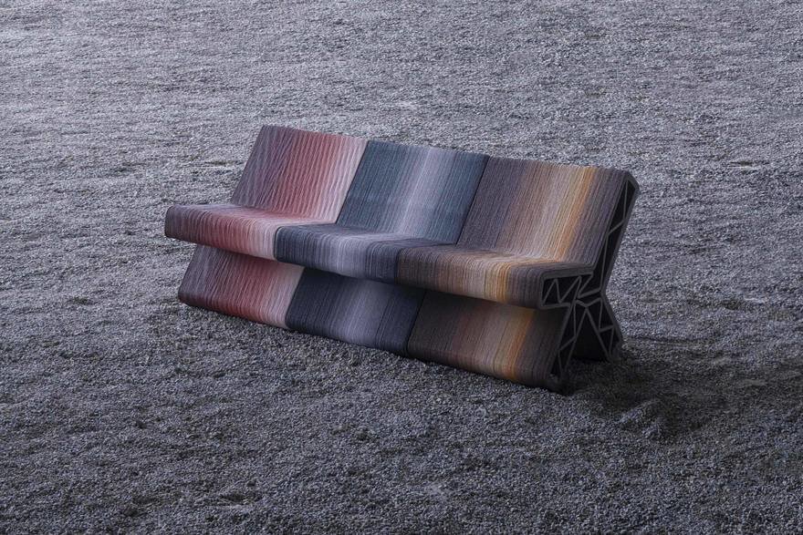 该项目通过材料再生与3D打印技术,将建筑废料转化为公共设施,体现循环设计与城市记忆的结合。