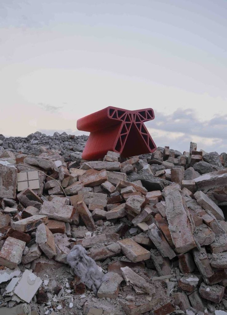 Inorganic Growth 是一项将城市拆迁废料转化为3D打印公共家具的可持续设计项目。设计团队通过对混凝土、砖块与砂浆等建筑废弃物进行破碎、筛分与再加工,形成可用于3D打印的复合材料,其中再生材料占比高达约85%。该项目结合现场处理与数字制造技术,实现从废料到家具的一体化闭环生产流程,减少运输与碳排放。最终生成的座椅与城市家具不仅具备结构强度与耐用性,还通过材料本身呈现出具有历史痕迹的色彩与纹理,使产品成为城市记忆的物质载体。该设计在功能、环保与文化表达之间建立联系,探索城市更新中的循环材料应用路径。