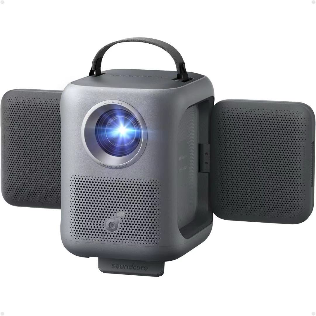 Anker的Soundcore Nebula P1i是一台369美元的便携投影仪。这个价格,必须做取舍。它把预算押在了几件事上:1080p画质,色彩准确自然,支持10-bit HDR;Google TV内置,不用外接盒子,Netflix、YouTube直接看;音箱做成折叠式,朝前朝向观众,10瓦x2,比同价位那些听个响的强。妥协的地方也很清楚:380流明亮度,白天拉窗帘是必须的;没有内置电池,得插电用;音质中高频尚可,低频薄——但EQ里可以调,或者外接蓝牙音箱。自动对焦、梯形校正、避障一套下来,摆好位置按个键就行。5磅重,拎着走不费劲。HDMI ARC、USB-A、3.5mm该有的都有。