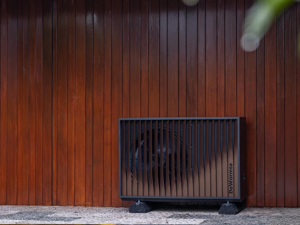 Pomp MP 在外观设计上突破传统热泵设备“工业箱体”的刻板印象,采用整体一体化金属外壳与流畅的圆角曲面,呈现出类似家电产品的亲和形态。正面以简洁的大面积面板为主,减少视觉分割,使设备在建筑外立面或室内空间中更具整体感与秩序感。通风开孔与功能结构被有序隐藏或整合于造型之中,既满足散热需求,又避免杂乱外露。比例控制上强调稳重与低重心,使产品具有可靠与安静的视觉感受。整体设计通过“去工业化”的形式语言,将原本技术导向的设备转化为更易被家庭环境接受的视觉存在。