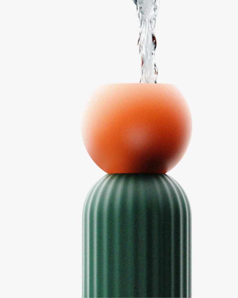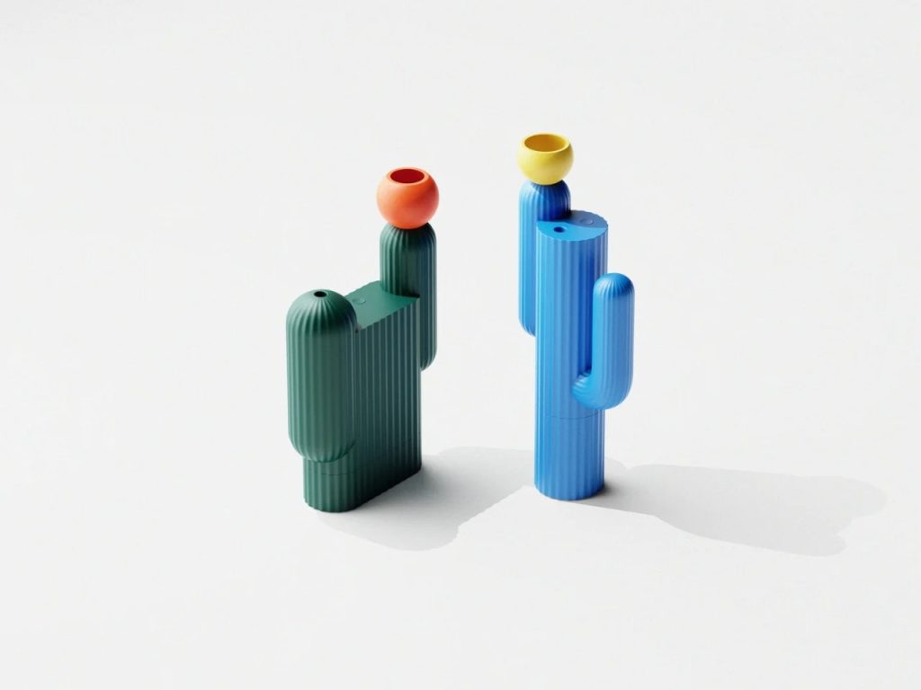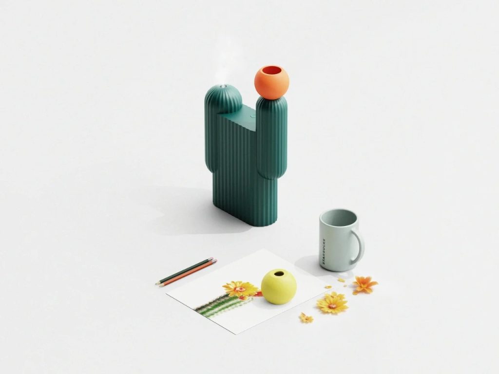 Cabu是一款仙人掌造型的加湿器,由设计师Ho Joong Lee创作。它拥有圆润的棱纹躯干,提供森林绿与钴蓝两种主色,顶部磁吸花朵(黄、橙、粉可选)实为注水口,加水动作如同浇灌植物。背面设有透明水位窗,采用USB-C充电。设计将加湿功能隐于拟人化的形态中,让日常使用充满仪式感,为干燥空间增添一丝安静的生命力。