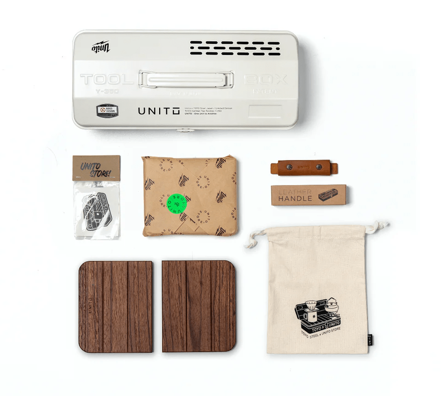 该项目由 Unito 联合 Toyo Steel 开发,通过对经典钢制工具箱语义的再编码,将其转化为咖啡场景中的移动化收纳单元。设计以“Object Fetishization”为核心方法论,强调物件从功能载体向情感媒介的转译。外观采用高度克制的几何体量与连续折弯结构,结合一体化金属成型工艺与精细表面涂层,构建出具有工业精度与触觉品质的CMF体系。内部通过有序分隔与尺度控制实现功能模块化,使收纳逻辑与使用路径形成一致性。整体呈现出一种从“工具理性”过渡到“体验叙事”的设计策略。