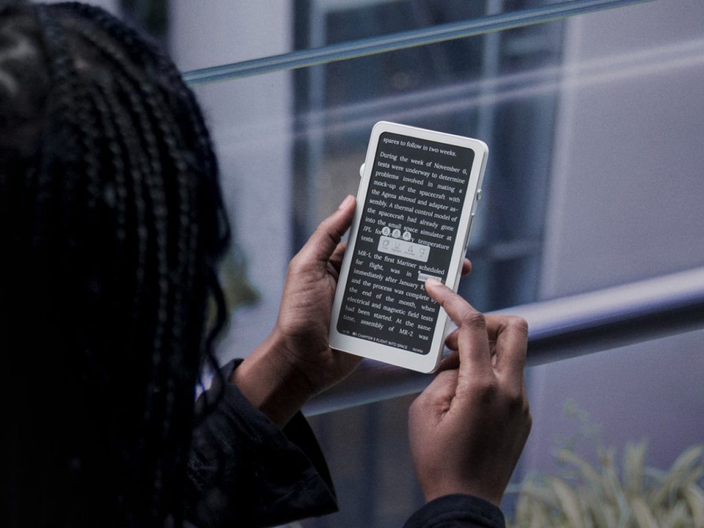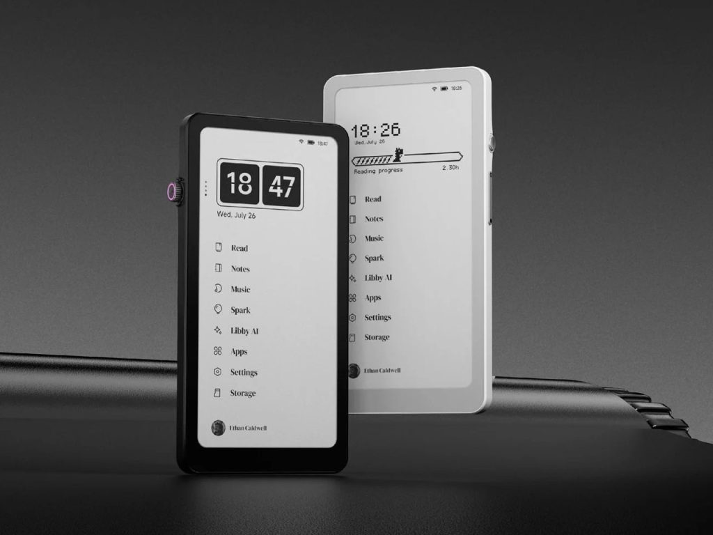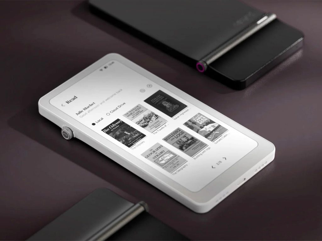 Krono是DuRoBo推出的6.13英寸水墨屏智能手机,运行完整Android 15系统,定位于阅读与轻办公的整合终端。其搭载300 PPI Carta 1200屏幕、八核处理器、6GBRAM与128GB存储,在电子墨水设备中提供更高的多任务能力。侧边实体旋钮将刷新率、前光、录音与浏览等操作整合为触觉交互,回应低刷新率屏幕的使用特性;背部“Axis”呼吸灯通过节律提示强化专注状态。产品在形态上接近手机尺寸,在系统上保持开放,将阅读器从单一内容终端转化为可自定义的信息处理工具。