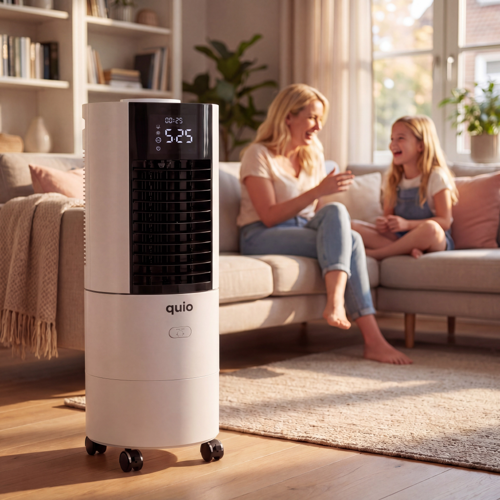 这是一款集制冷、净化、加湿与送风于一体的智能空气处理设备,基于蒸发式冷却技术实现低能耗降温,同时兼顾空气湿度调节。产品内置多层过滤系统,可有效去除过敏原与污染物,提升室内空气质量。采用无刷电机实现静音高效运行,并支持语音控制与自动环境感知调节。立式可移动设计增强使用灵活性,适用于全年多场景,打造舒适、健康且节能的室内空气解决方案。