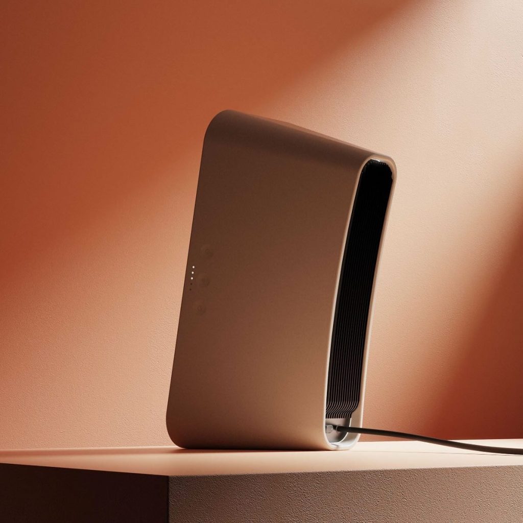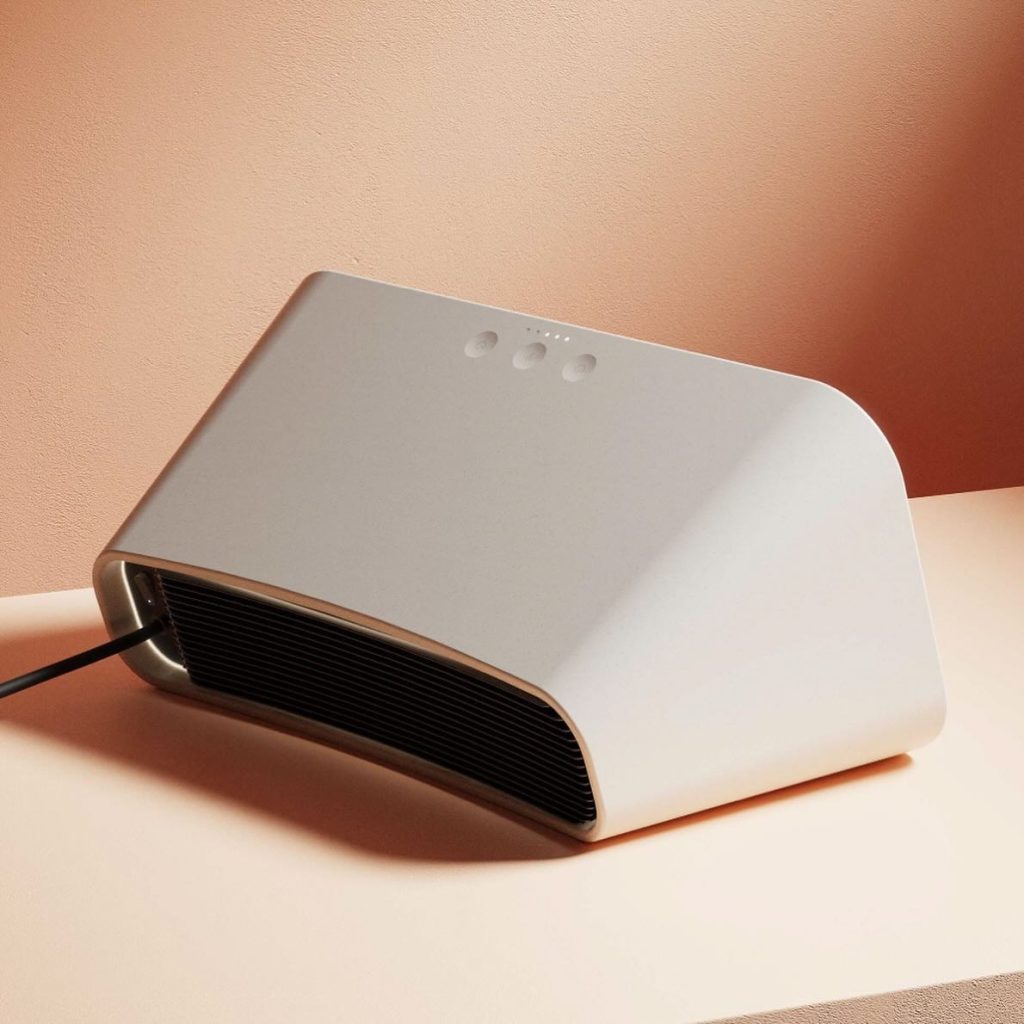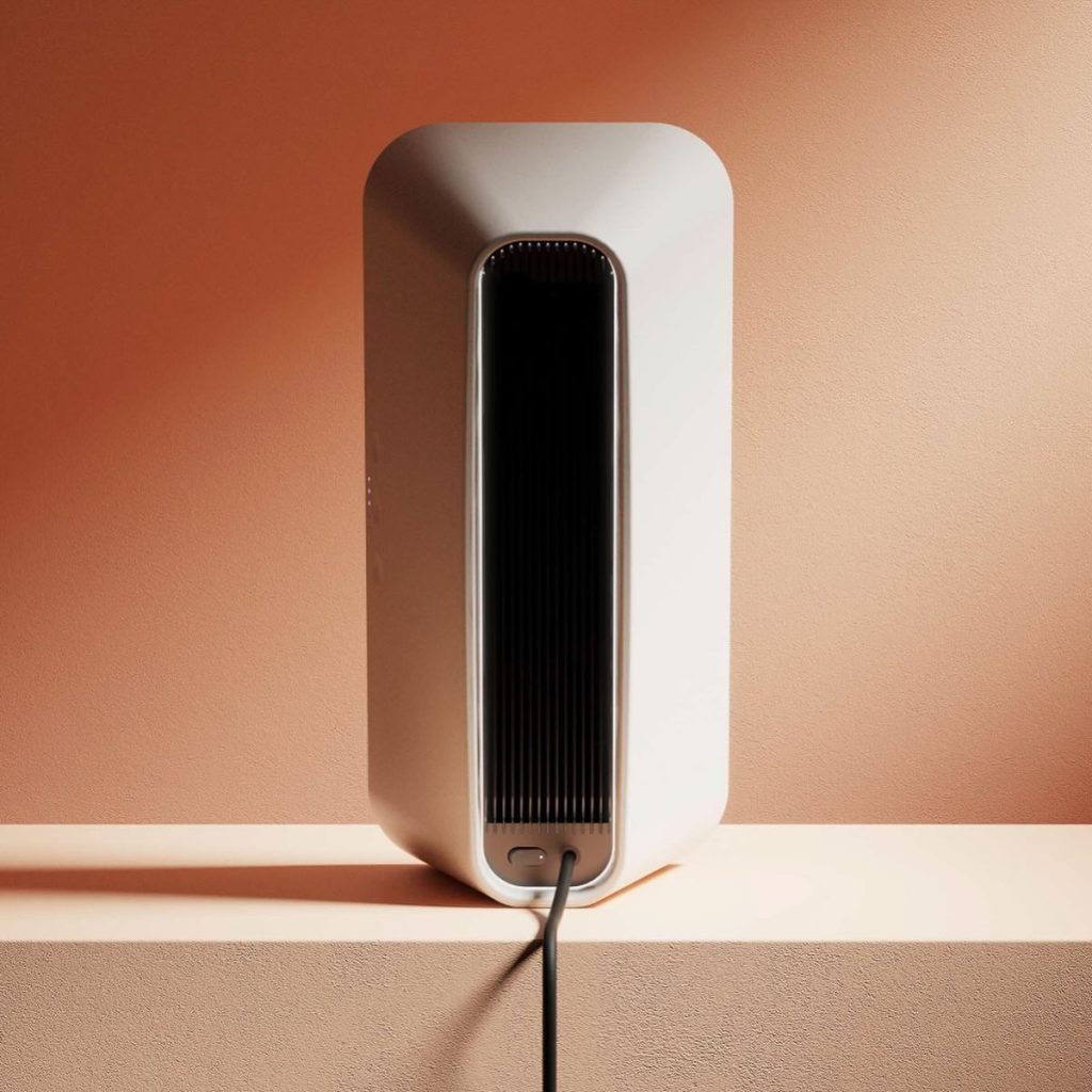 Heato 个人智能加热器由意大利设计公司 NOI Creative 打造,品牌归属于 OMNOI,核心设计理念是“让取暖成为一种融入日常的无声陪伴,而非对抗寒冷的笨重噪音”。由意大利设计师 Diego Cimatti 设计,产品采用无缝超声波粘合工艺,机身表面为哑光质感,以柔和的大地色系斑点材质软化工业感。其紧凑形态可垂直或水平放置,适应桌面、沙发边等不同场景。它搭载陶瓷发热元件与智能自适应温控系统,通过三个触控键实现即时温暖的定向送风,旨在取代传统臃肿取暖器,为现代人提供一个内敛、安静的私人“温暖驿站”